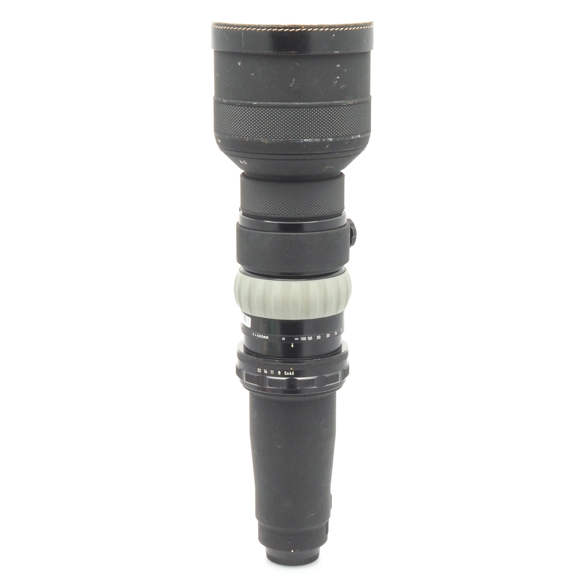 Manual focus long telephoto prime lens made for the F-mount SLR cameras by Nikon. Very early telephoto from Nikon, only around 1300 were ever produced. Consists of two parts, the focusing unit and the lens head that can be screwed apart quite easily. Built-in hood and tripod mount. Metal body available with black finish.