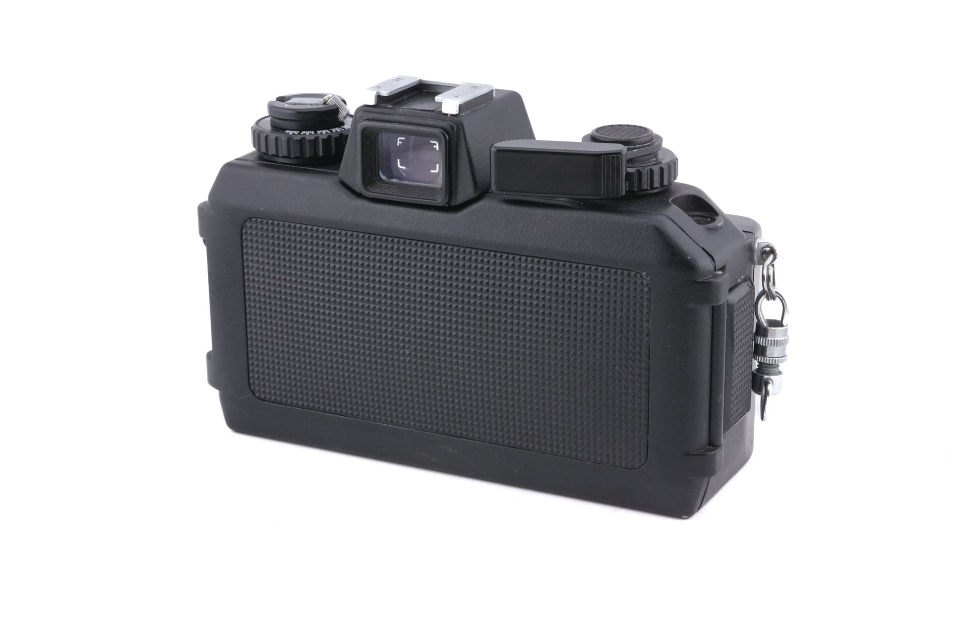 Manual focus Nikonos mount 35mm camera released by Nikon in 1980. It was the first Nikonos camera to require a battery for operation and to have automatic exposure. It was also the first Nikonos camera to feature an entirely unique design not based on earlier Calypso cameras. Metal body available in black.