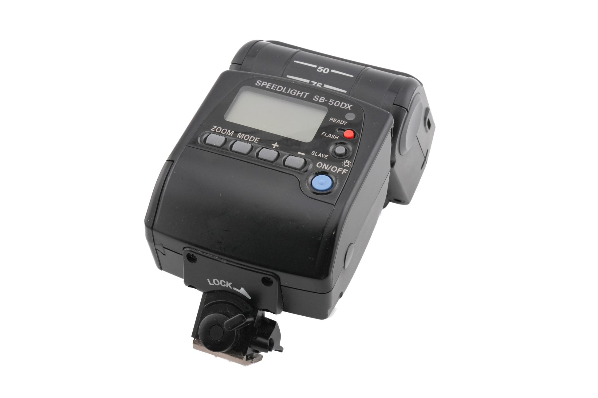 Flash made by Nikon. Originally for Nikon AF film SLR cameras. Plastic body available in black.