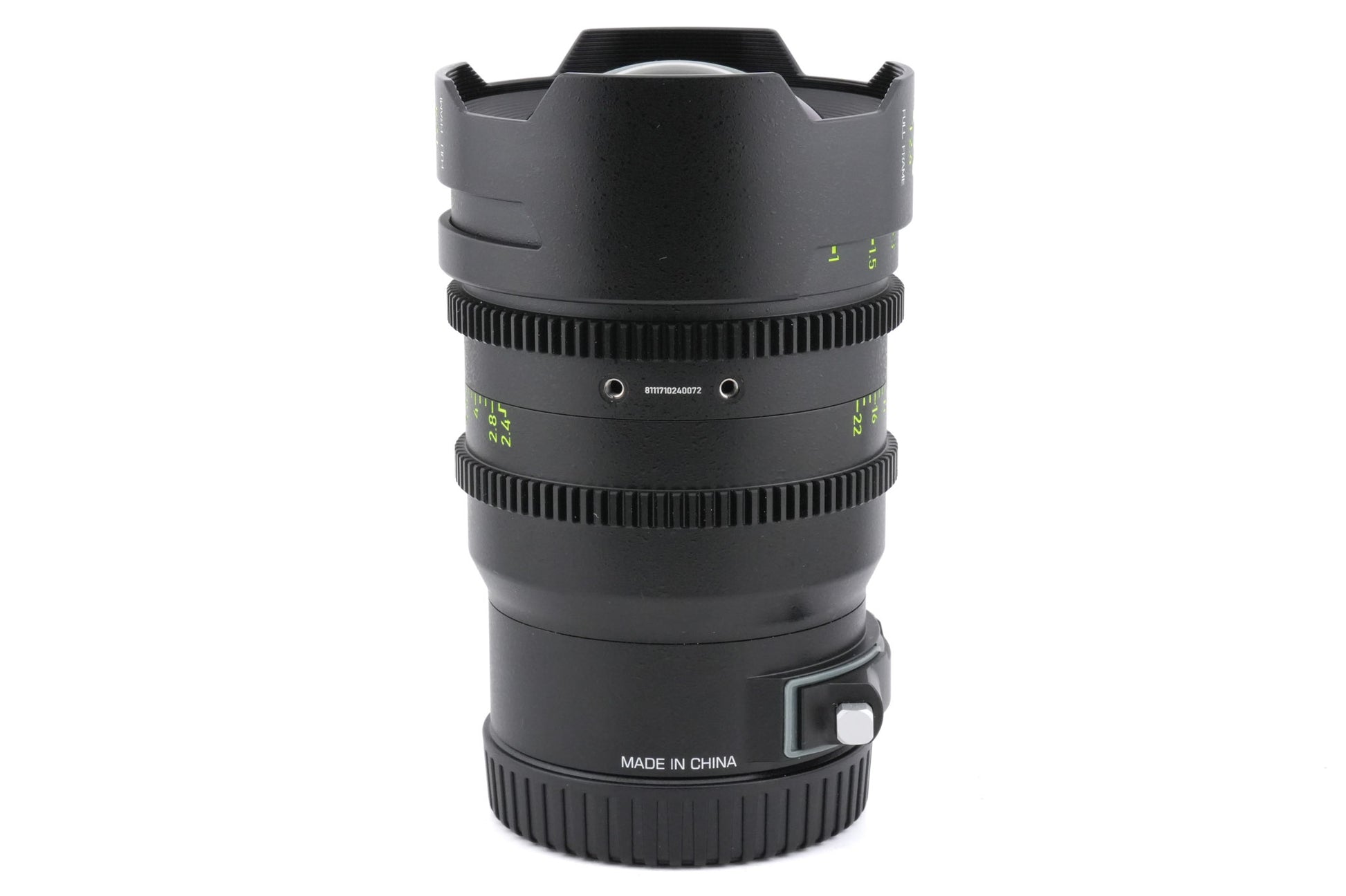 Manual focus wide angle cinema lens made for Canon RF mount mirrorless cameras by NiSi. metal body available in black.