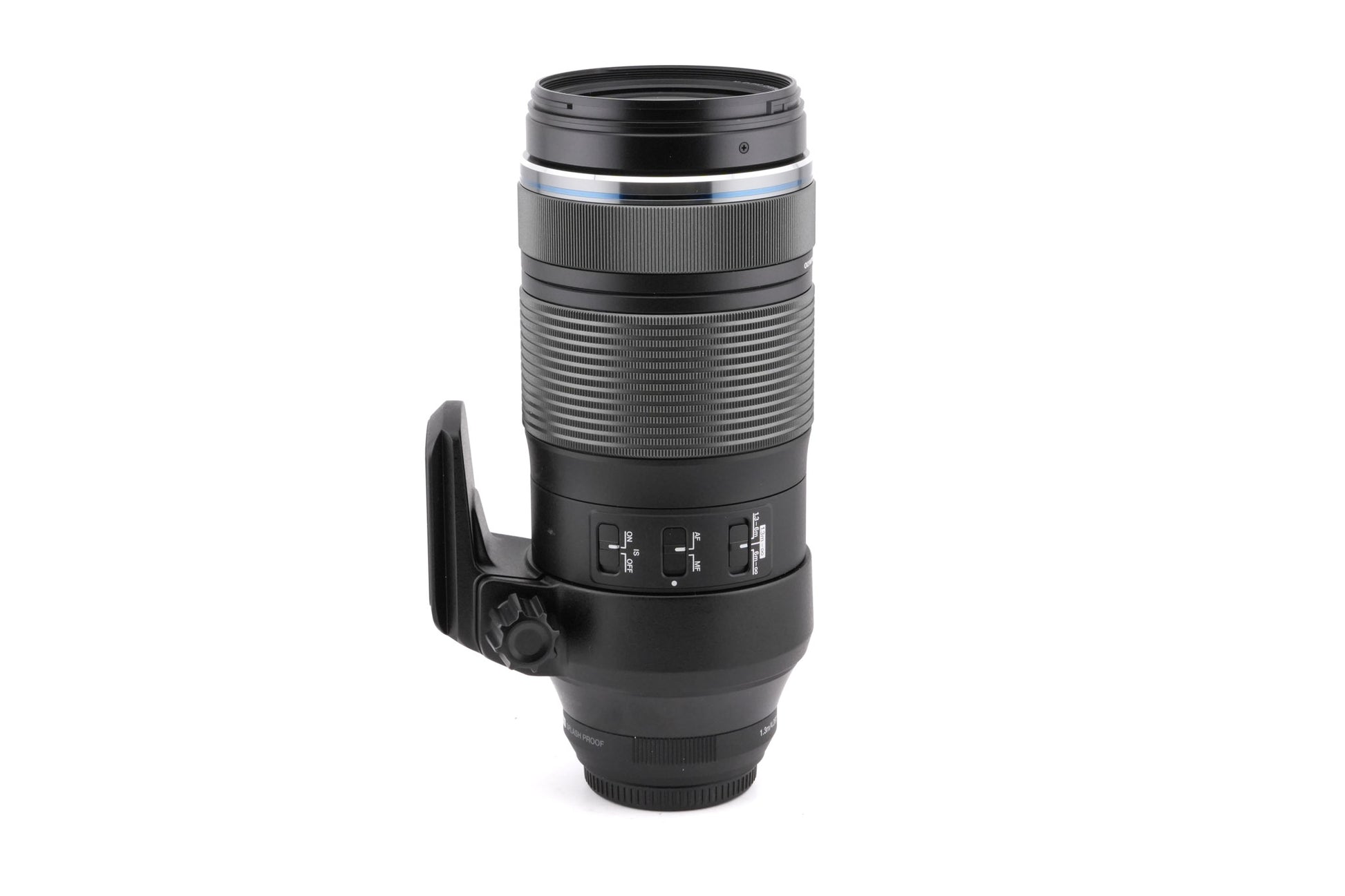 Autofocus telephoto zoom lens made for Micro Four Thirds (M4/3) mirrorless digital cameras by Olympus. Gives the equivalent focal length of 200-800mm on full frame / 35mm. Has Olympus' weather sealing, which protects it from freezing, splashes, & dust to IPX1 standards. Has 3 stops of image stabilization (IS). Metal body available in black.