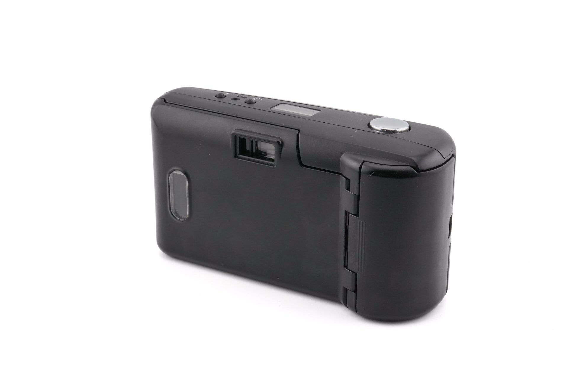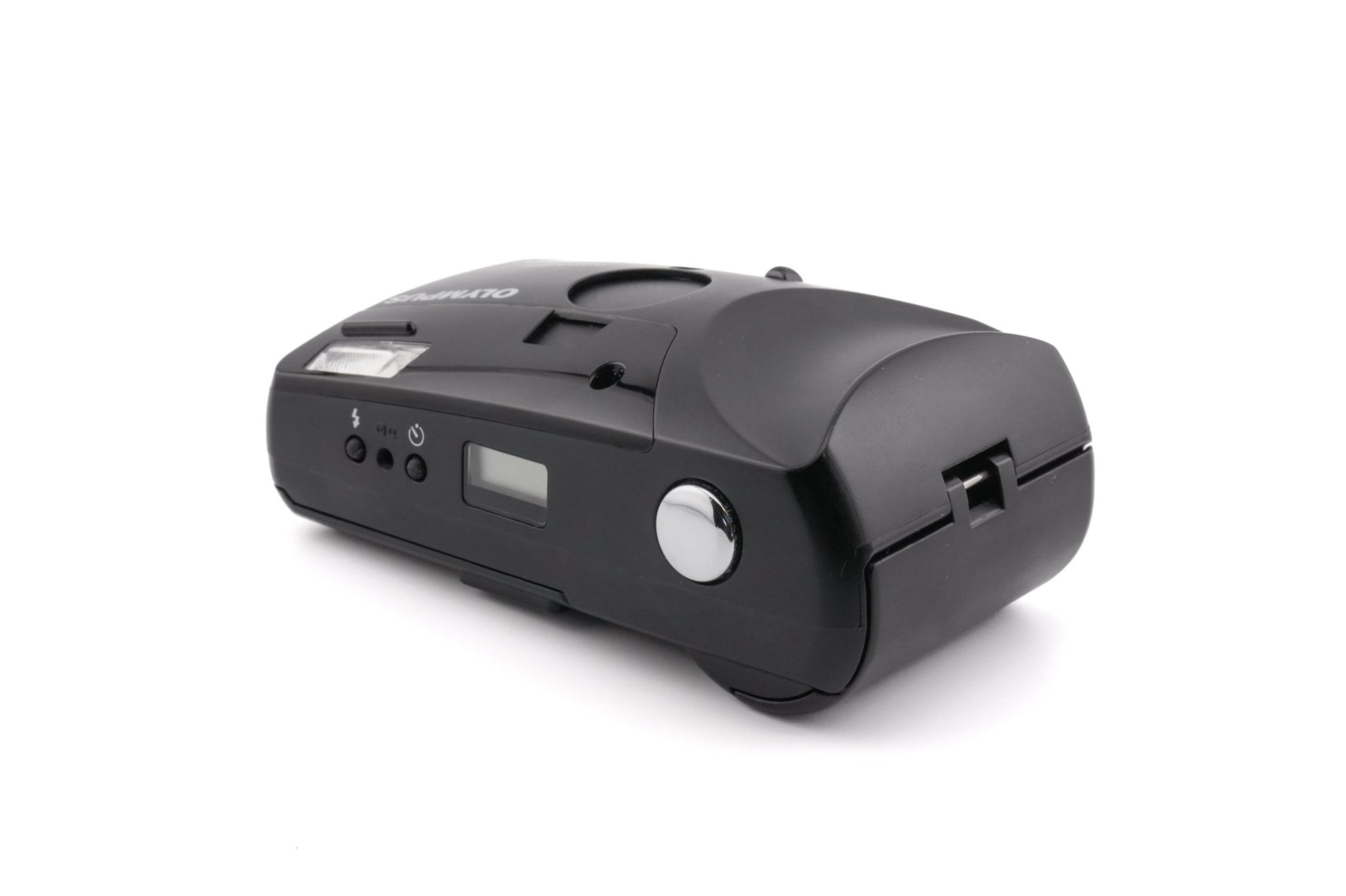 Autofocus 35mm point-and-shoot camera made by Olympus in 1995. It has a built-in flash and a sliding lens cover. Plastic body available in black.