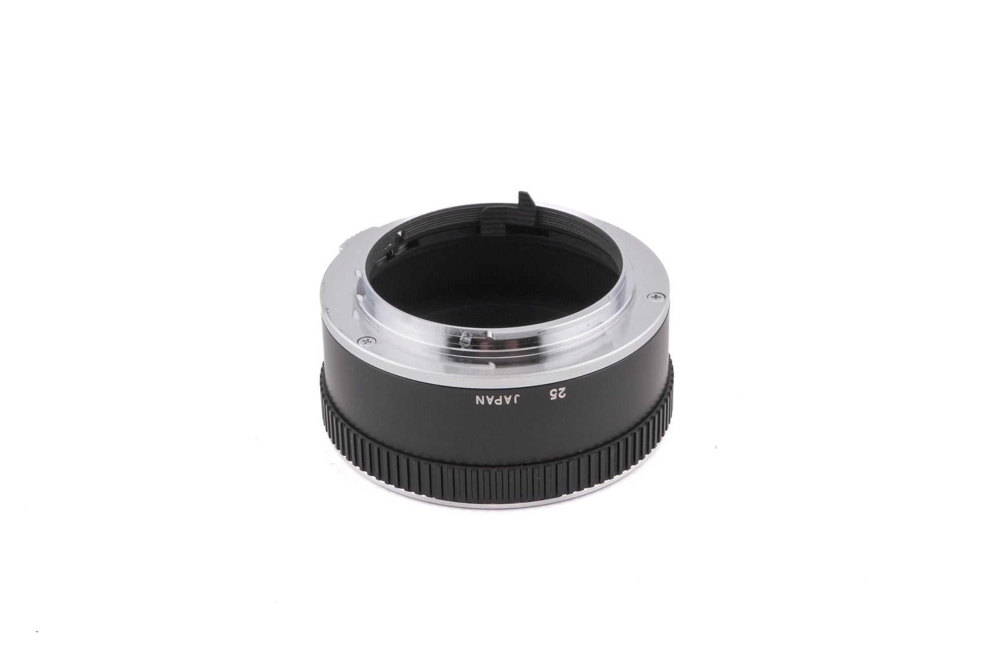 Extension tube for OM-mount SLR cameras by Olympus. Fully manual with no provision for operating the automatic diaphragm in the attached lens or for full-aperture metering. Metal body available in black.