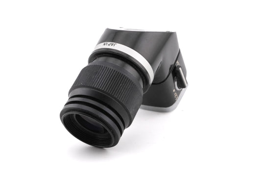 Angle finder for Olympus OM-mount 35mm SLR cameras. The eyepiece can be adjusted to suit most people’s eyesight. The eyepiece tube can be rotated through 360°, and has click stops at 90° intervals.