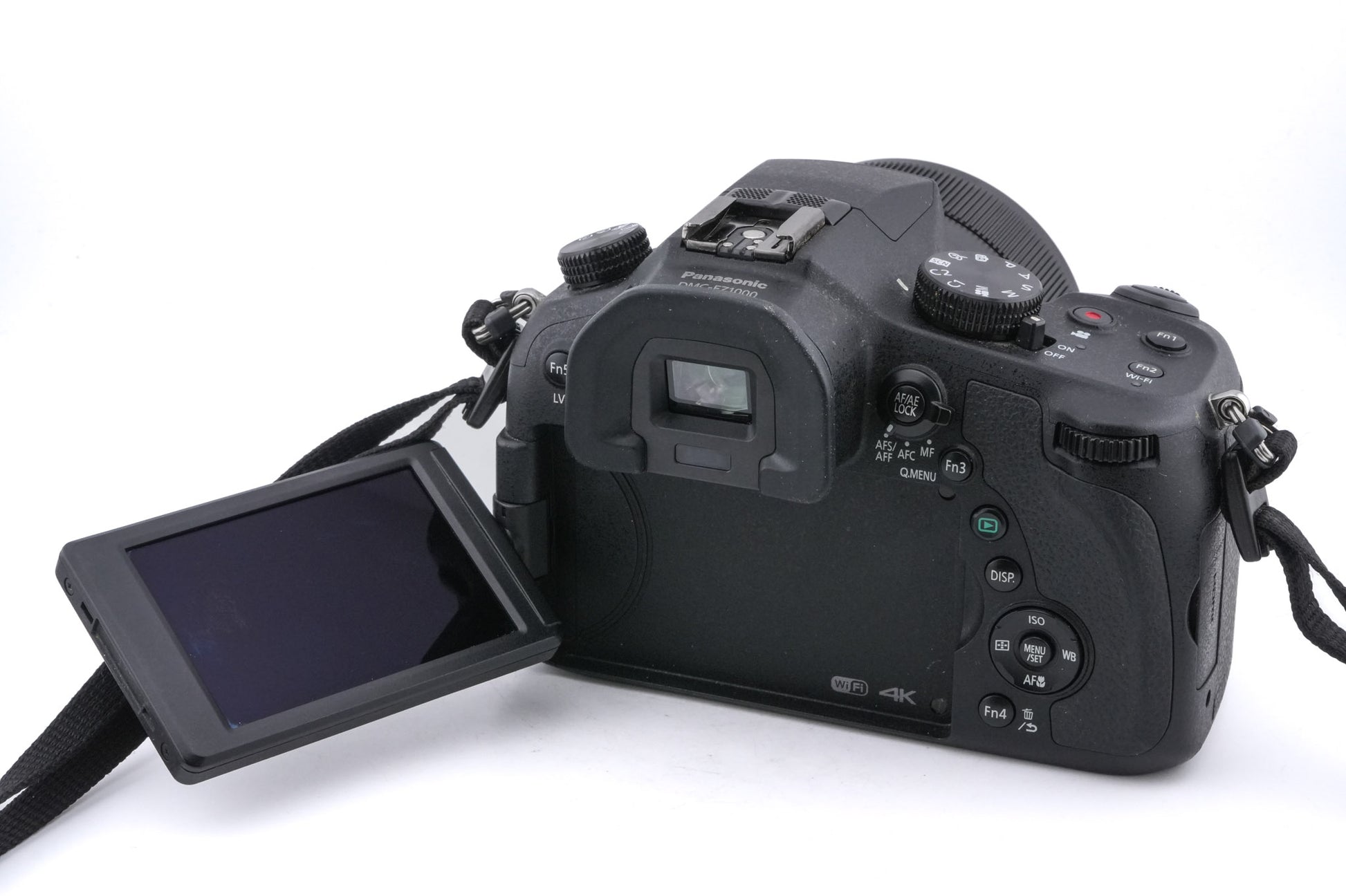 Autofocus digital bridge-style camera made by Panasonic in 2014. It has a 25-400mm equivalent focal length on full frame, 5-axis in-body image stabilization, 4K video recording at 30p, and a fully articulated 3” LCD. Metal and plastic body available in black.