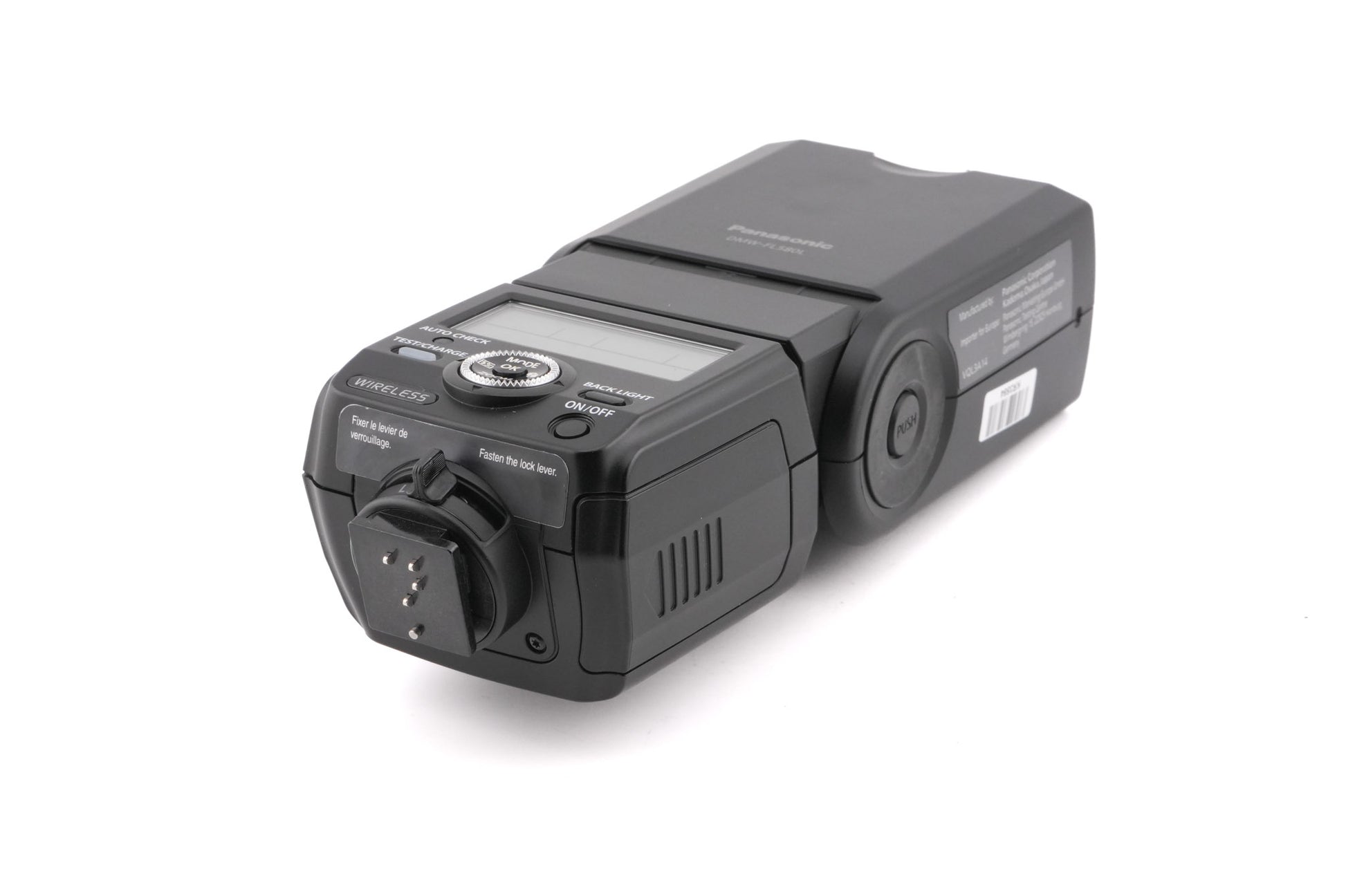 Flash made by Panasonic. It features a continuos LED video light. Plastic body available in black.