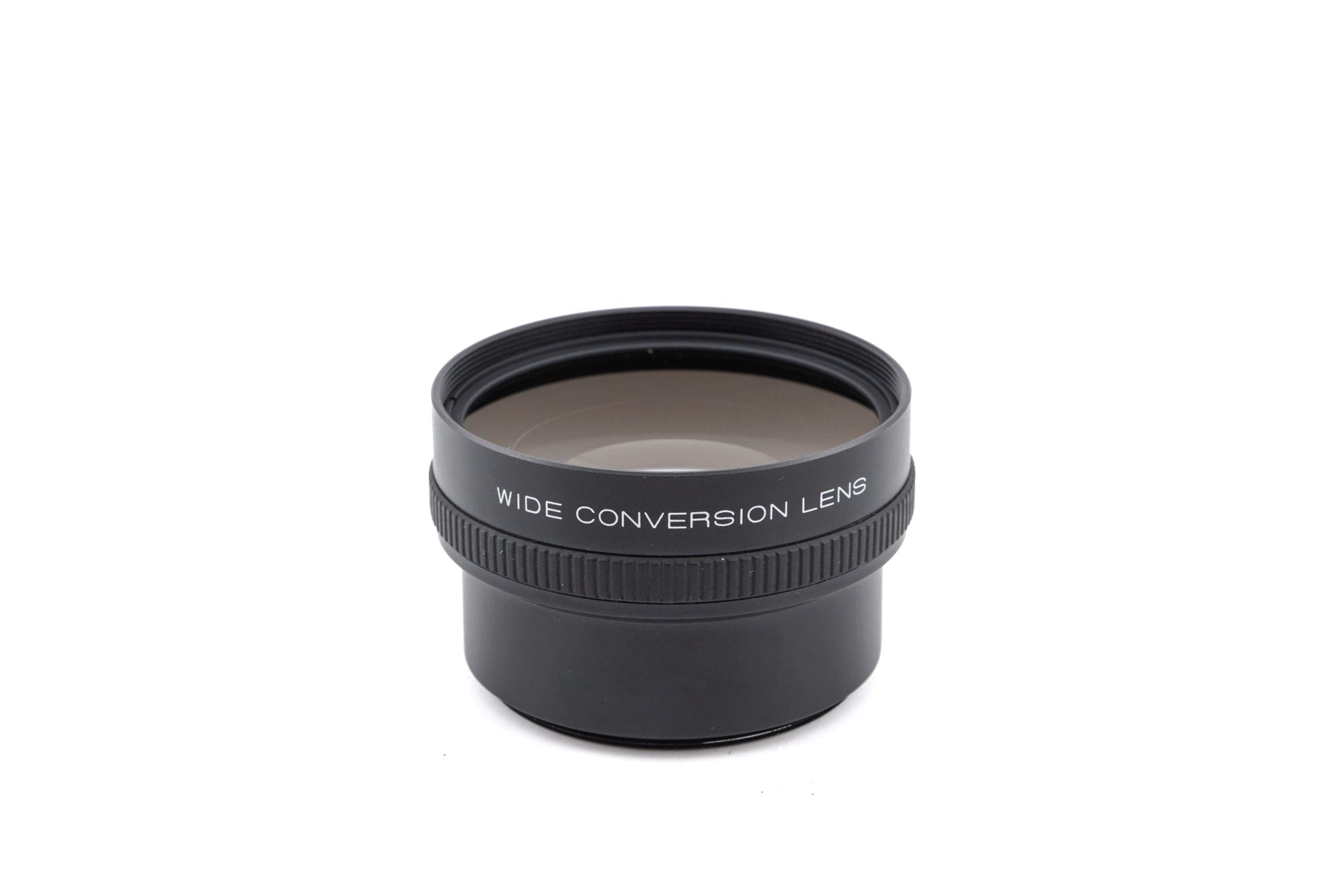 Wide angle lens attachment made by Panasonic. Has a 49mm thread mount. Metal body available in black.