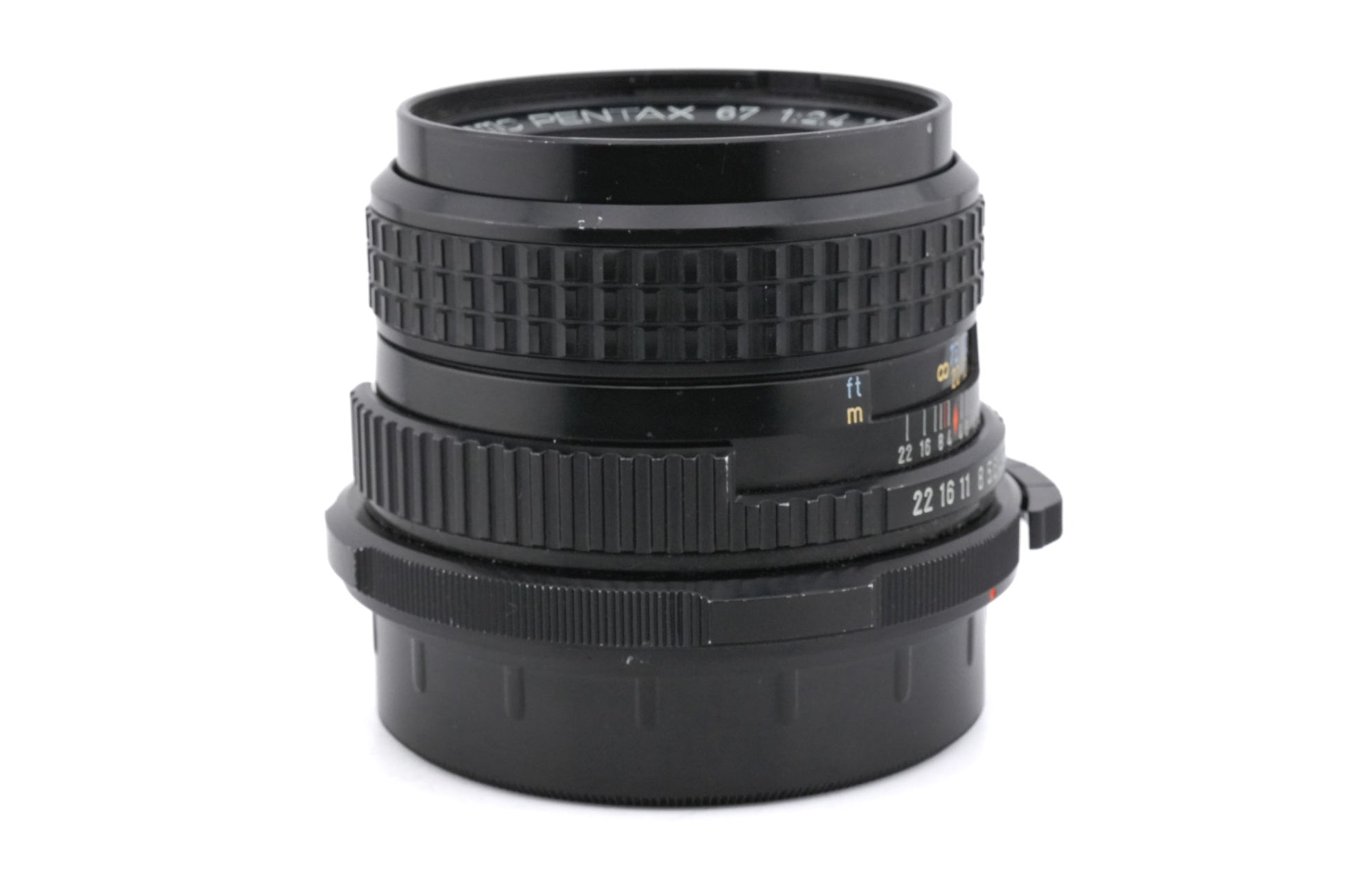 Manual focus normal lens made for 6x7 mount 120 SLRs by Pentax. It gives the equivalent field of view to a 52.5mm lens on full frame/35mm. This is the final version of the 105mm made by Pentax and features more plastic/rubber than previous models. Metal/plastic body available in black.