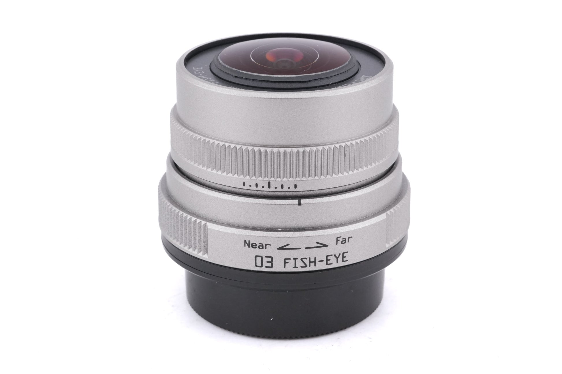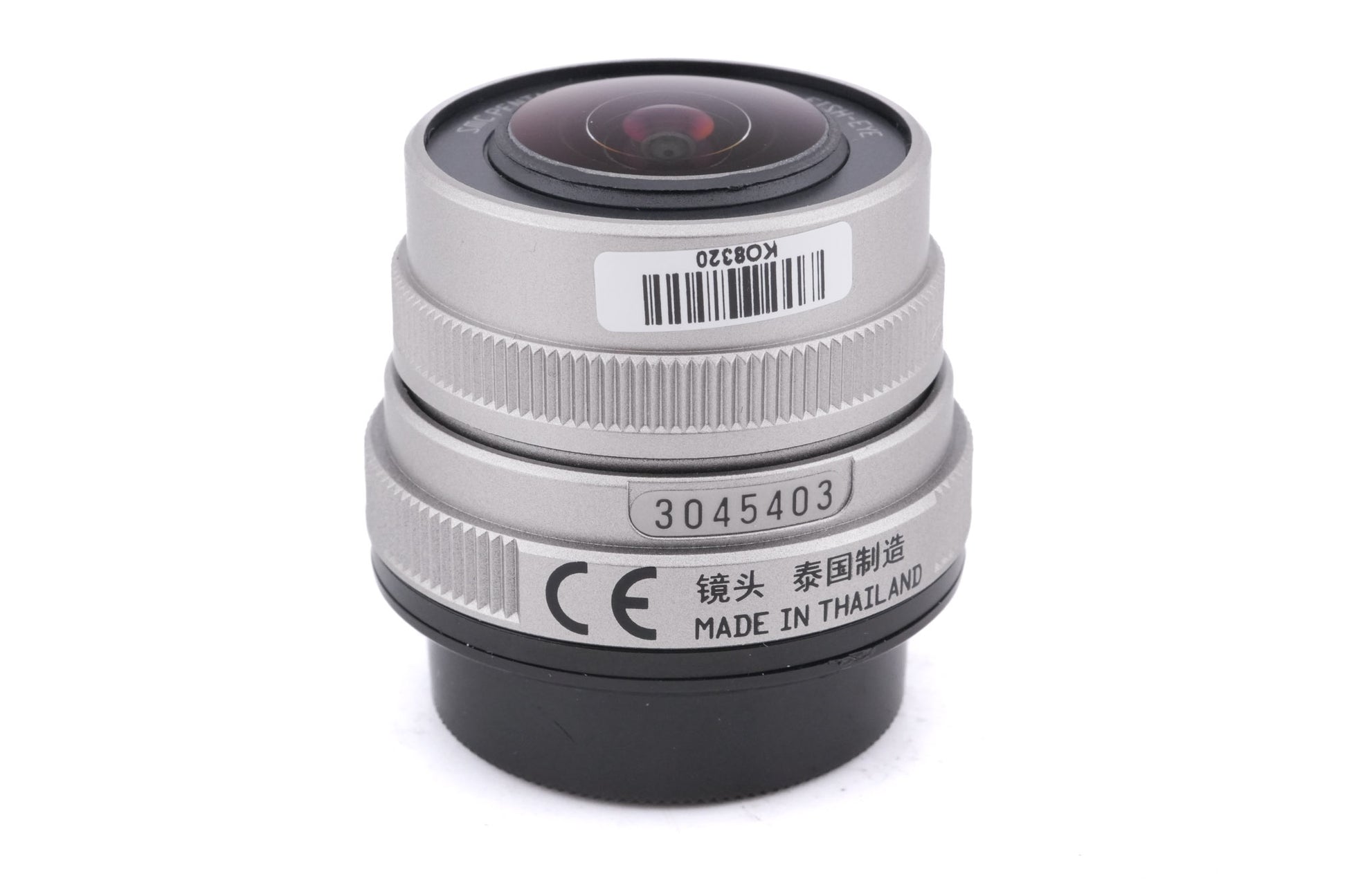 Autofocus fish eye lens made for Q-mount mirrorless cameras introduced by Pentax. It's referred to as 03 Fish-Eye in the Q system. Plastic body available in silver.