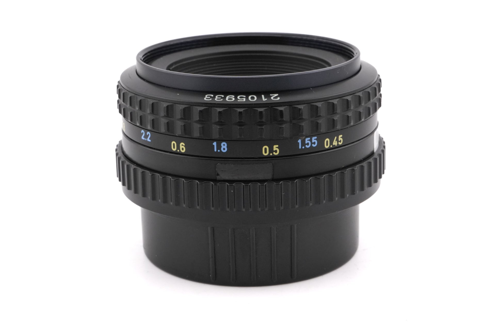 Manual focus normal lens made for K-mount 35mm SLR cameras introduced by Pentax. It was one of the first Pentax lenses to feature an A mode, allowing for shutter-priority autoexposure on compatible models. Metal body available in black.