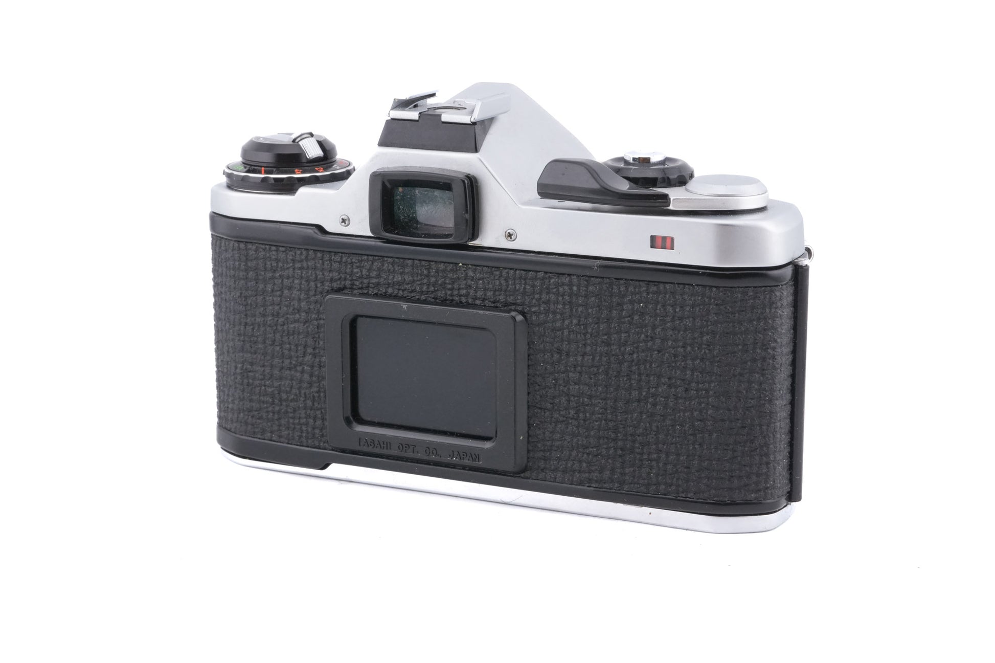 Manual focus K-mount 35mm SLR camera released by Pentax in 1976. It added aperture-priority auto-exposure to the then-popular compact SLR design introduced by the Olympus OM-1. Metal body available in black & silver.