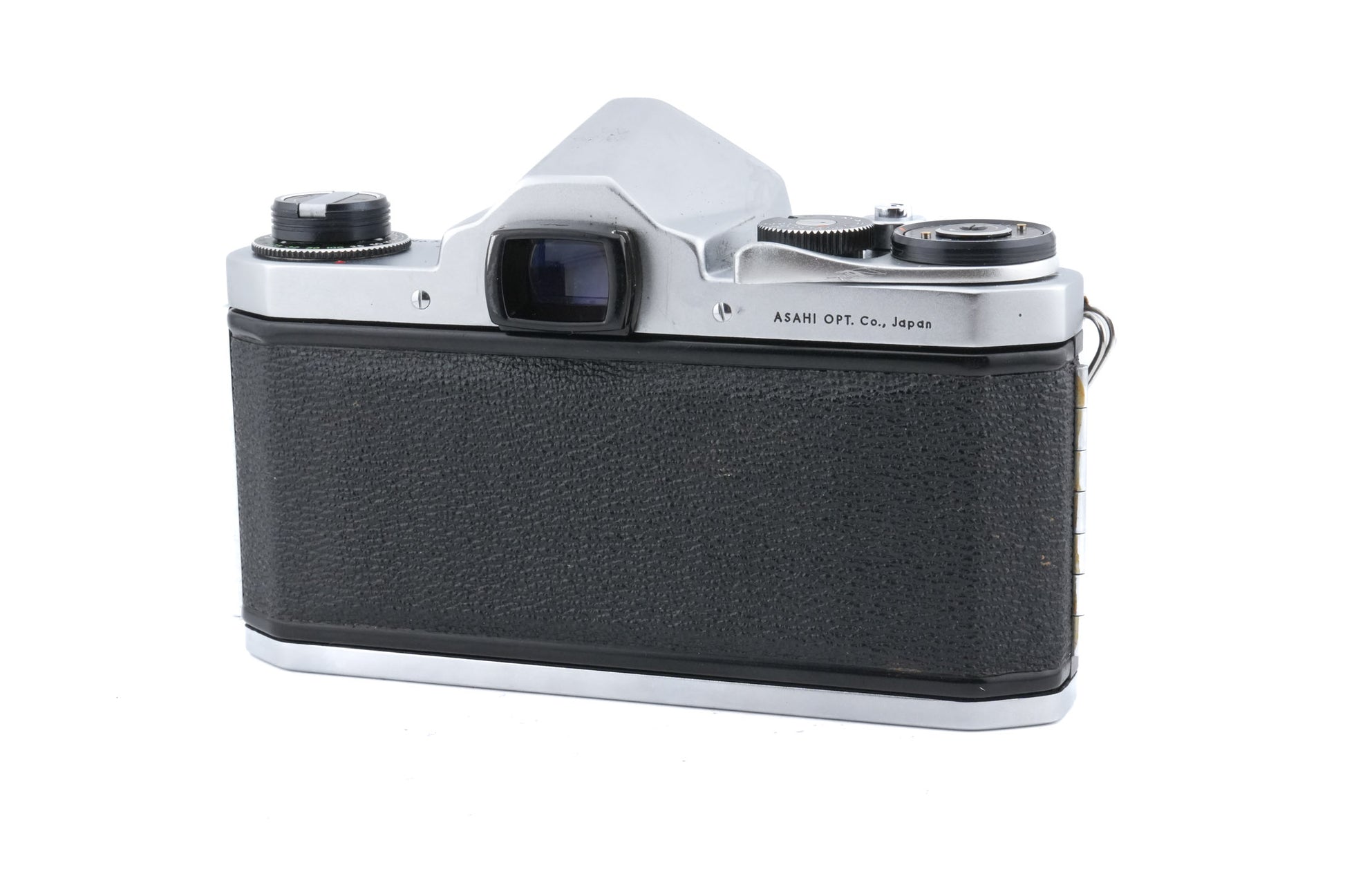 Manual focus 35mm film SLR made by Pentax. Metal body available in silver.