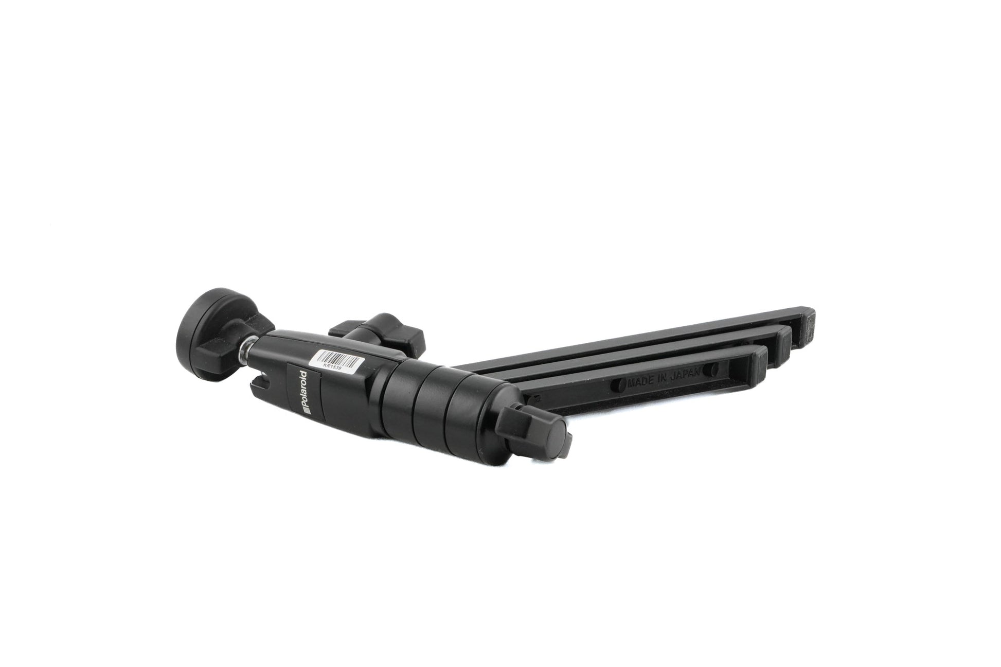 Tabletop tripod made by Polaroid. It has a 1/4" connecting screw. Metal body available in black.