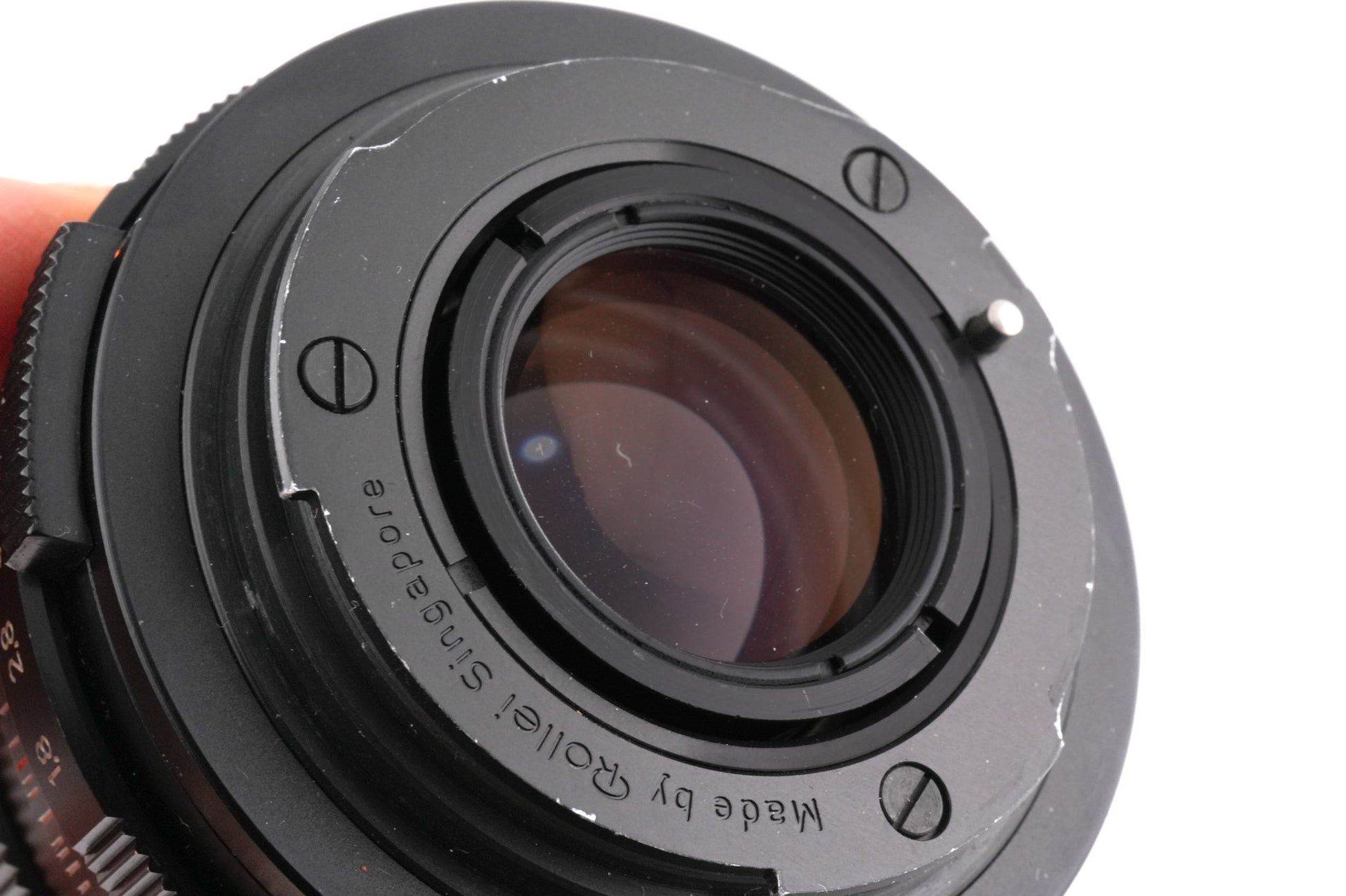Manual focus normal lens made for QBM-mount 35mm SLR cameras introduced by Rollei. Metal body available in black.