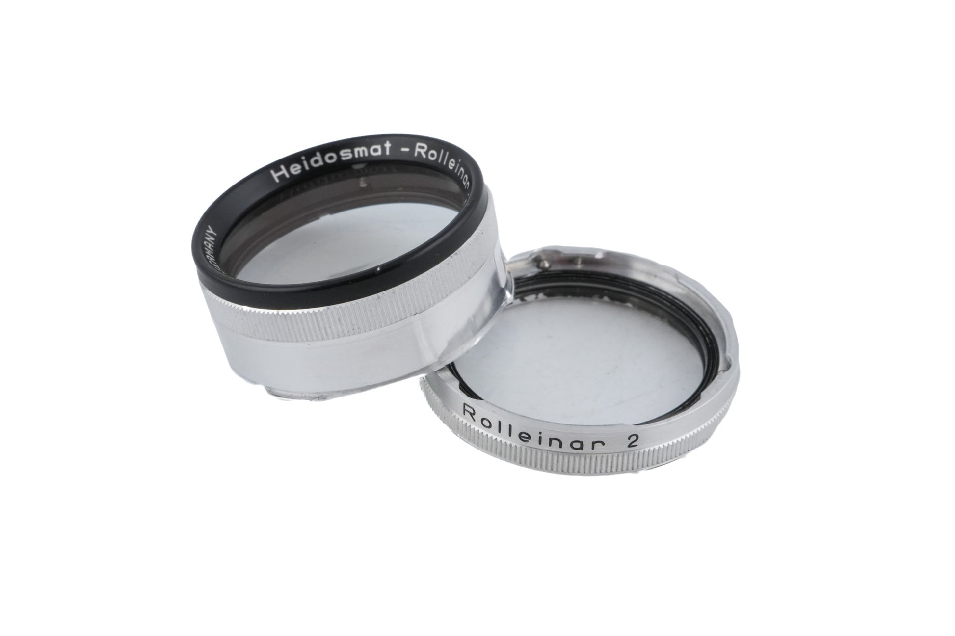 Close-up filter set made for TLRs by Rollei. The older version consists of three pieces and the newer version only has two. Both work identically and allow for focusing up to 31cm. Metal body available in silver.
