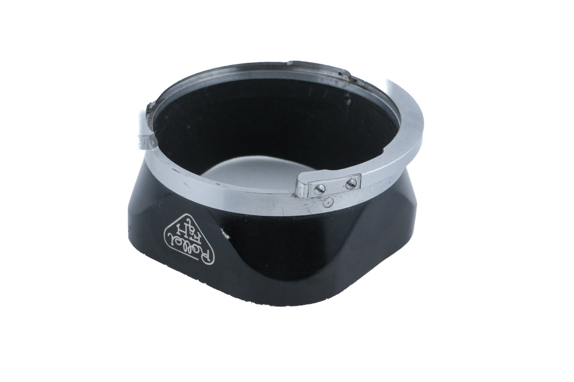 Lens hood made by Rollei for TLRs with Bay 3 accessory bayonets. Metal body available in black.