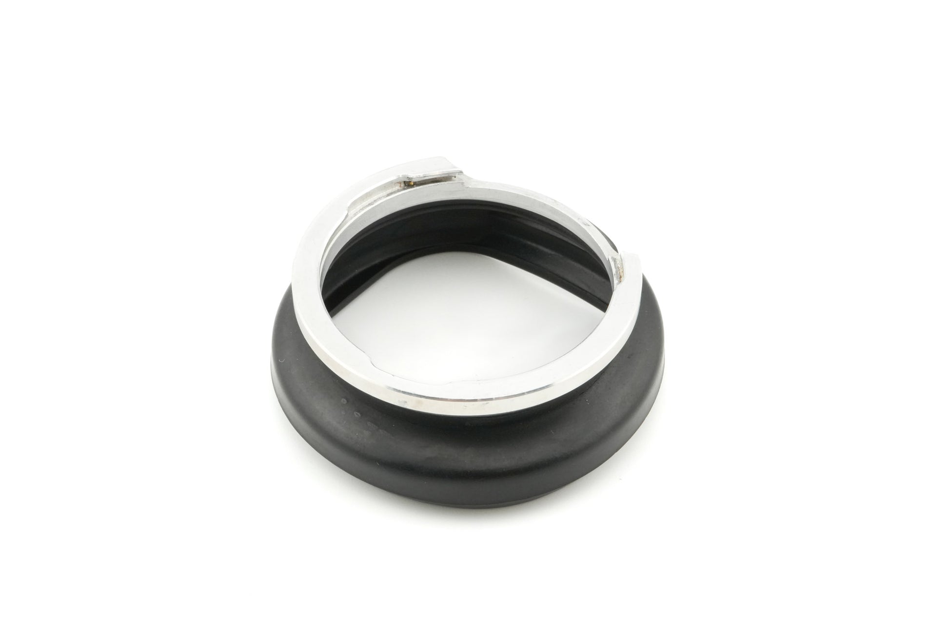 Lens hood made by Rollei for TLRs using Bay 3 III accessory bayonets. Blocks errant light from hitting the lens and causing flares. Collapses for easier storage. Black rubber & silver metal construction.