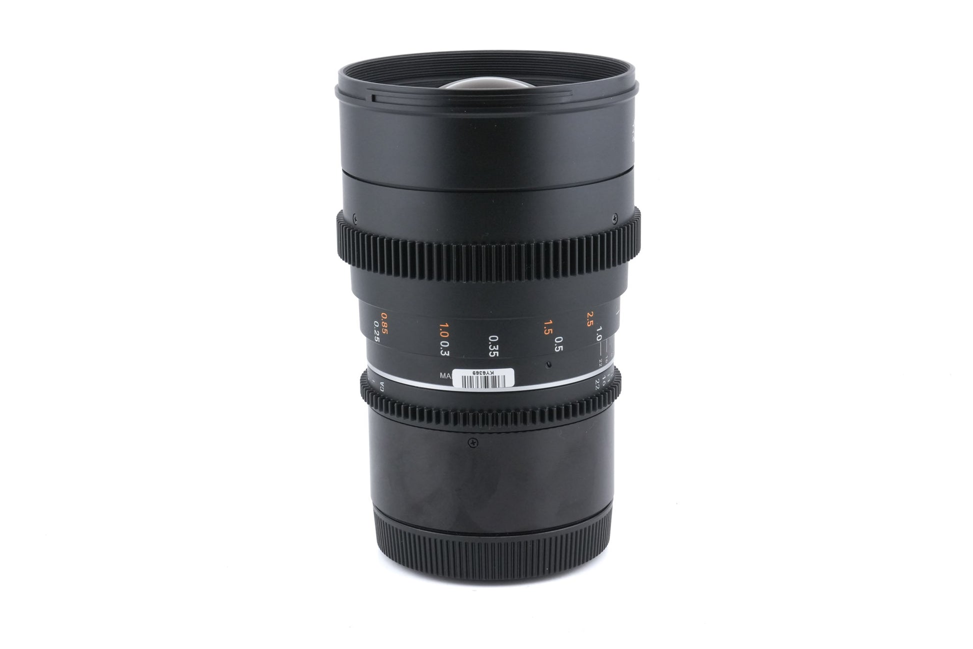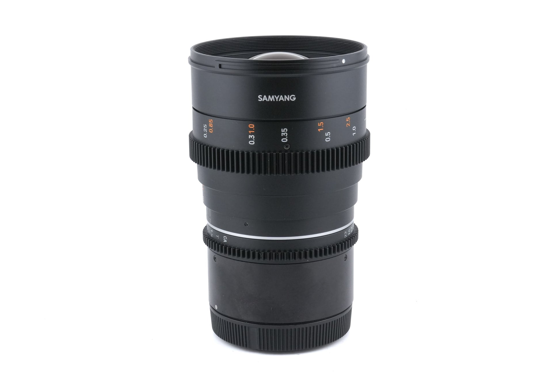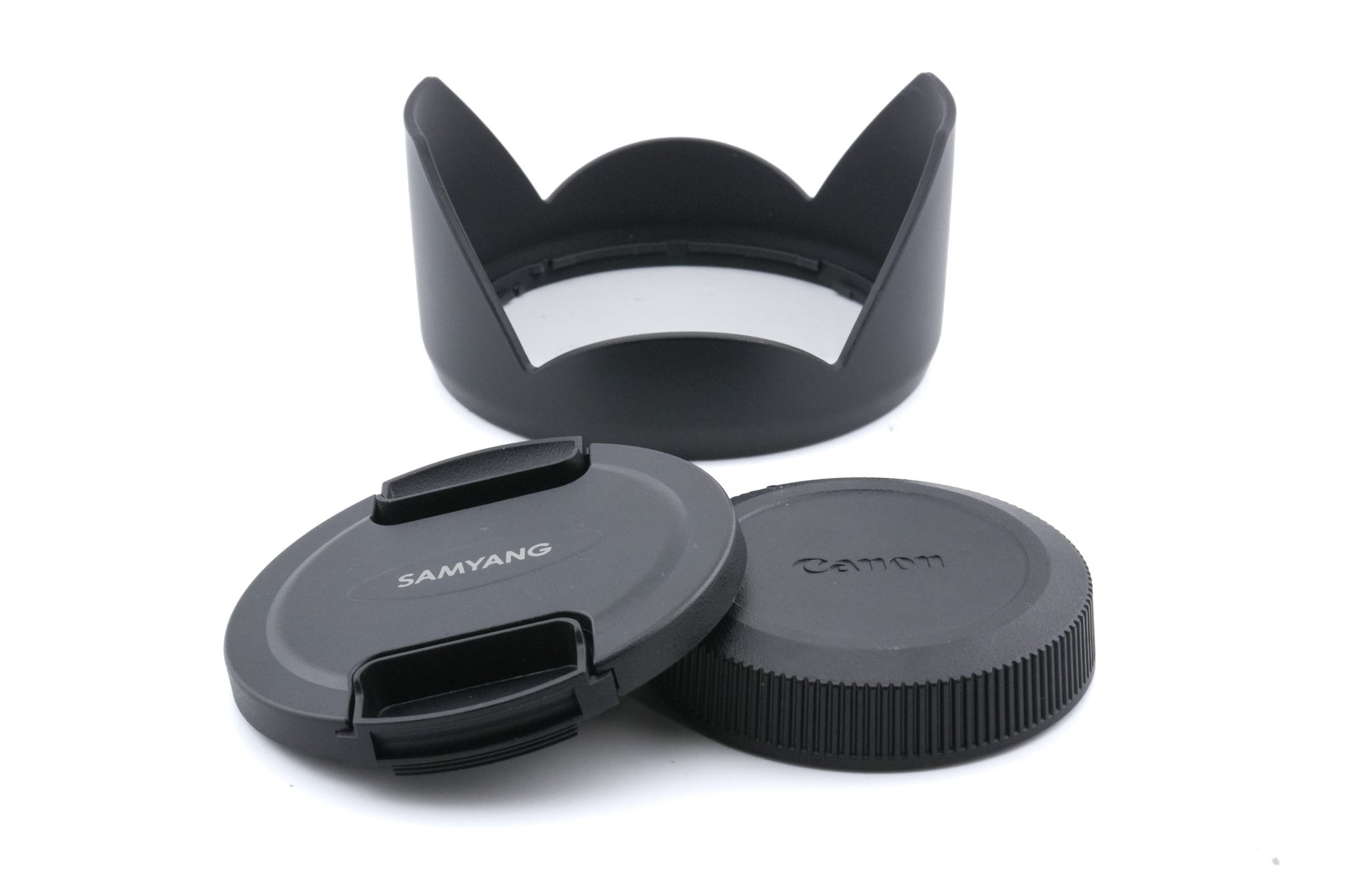 Manual focus cinema wide angle lens made for Canon EF mount digital cameras by Samyang. Metal body available in black.