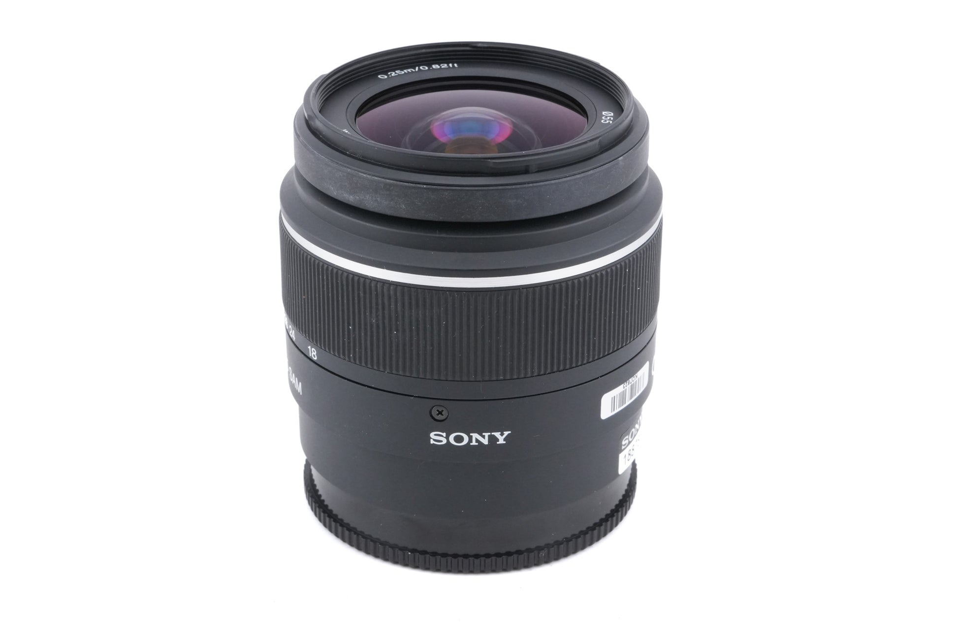 Autofocus standard zoom made for A-mount digital SLRs by Sony. It's meant for APS-C-sized sensors and gives the equivalent field of view to a 27-82.5mm lens on full frame/35mm. Plastic body available in black.