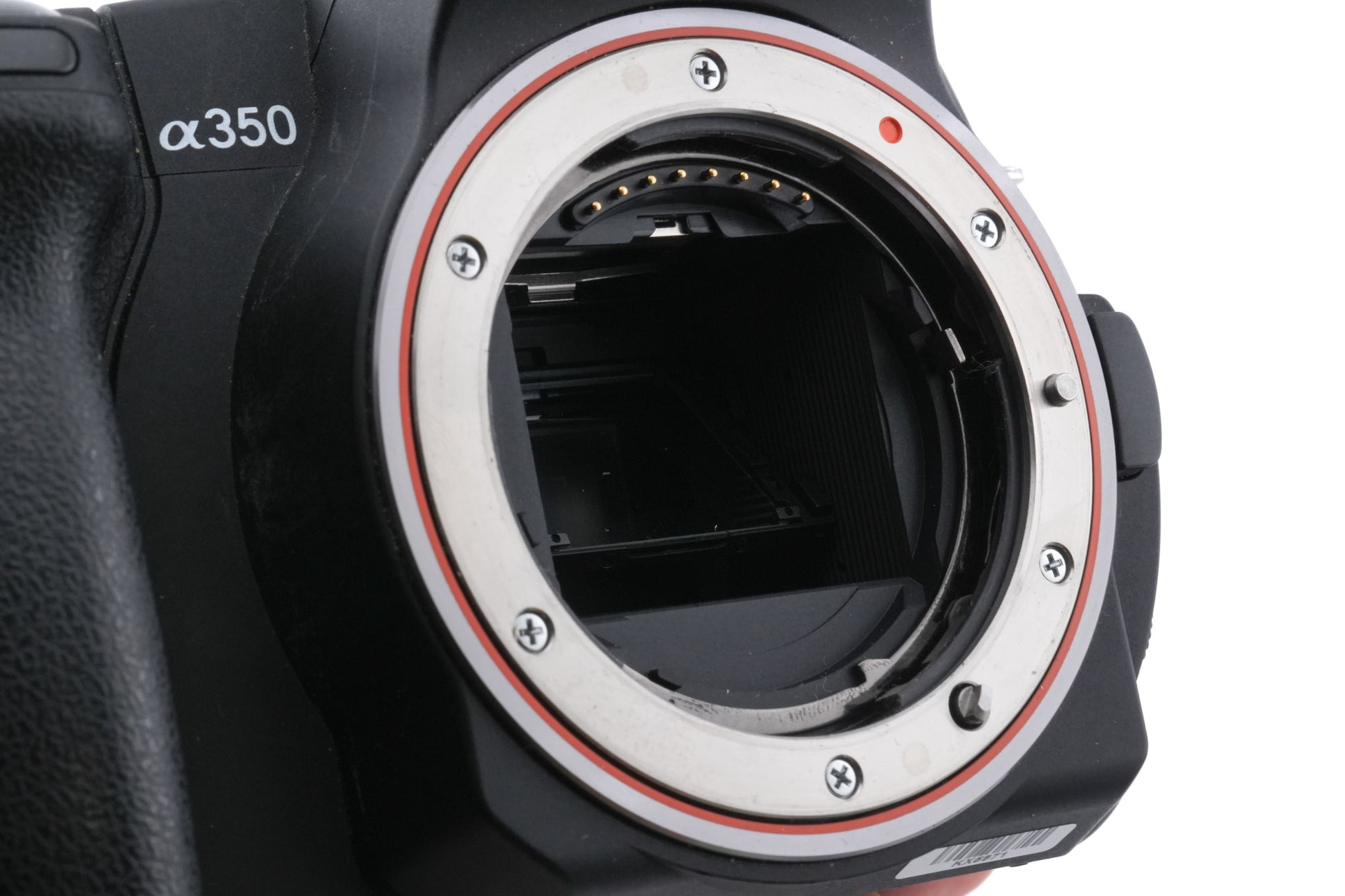 Autofocus APS-C A-mount DSLR camera released by Sony in 2008. It has a 2.7" tilting LCD and a built-in flash. It requires CF memory card. Plastic body available in black.