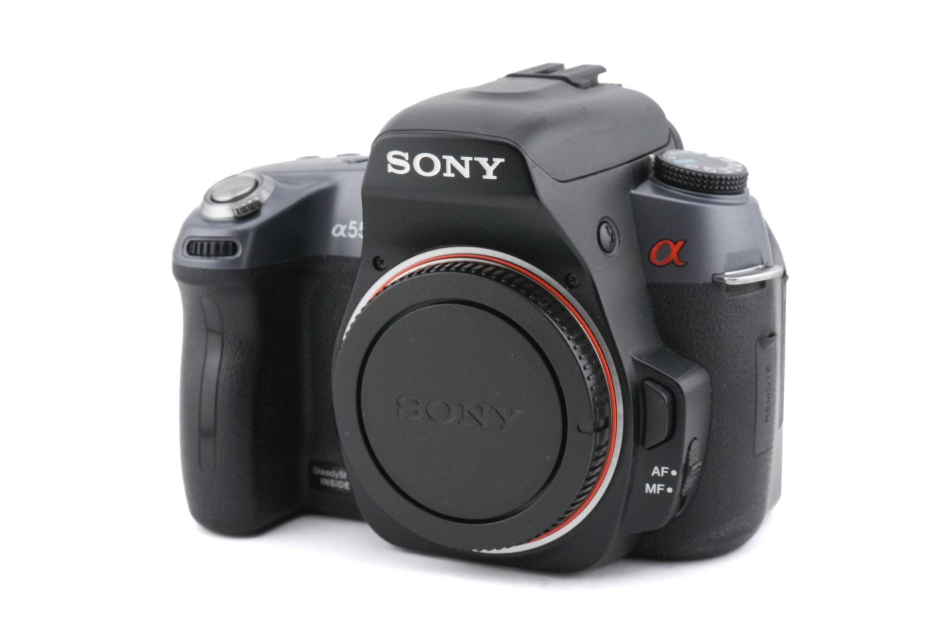 Autofocus APS-C DSLR camera released by Sony in 2009. Has a rear 3" tilting LCD screen and a pop-up flash. Metal and plastic body available in black.