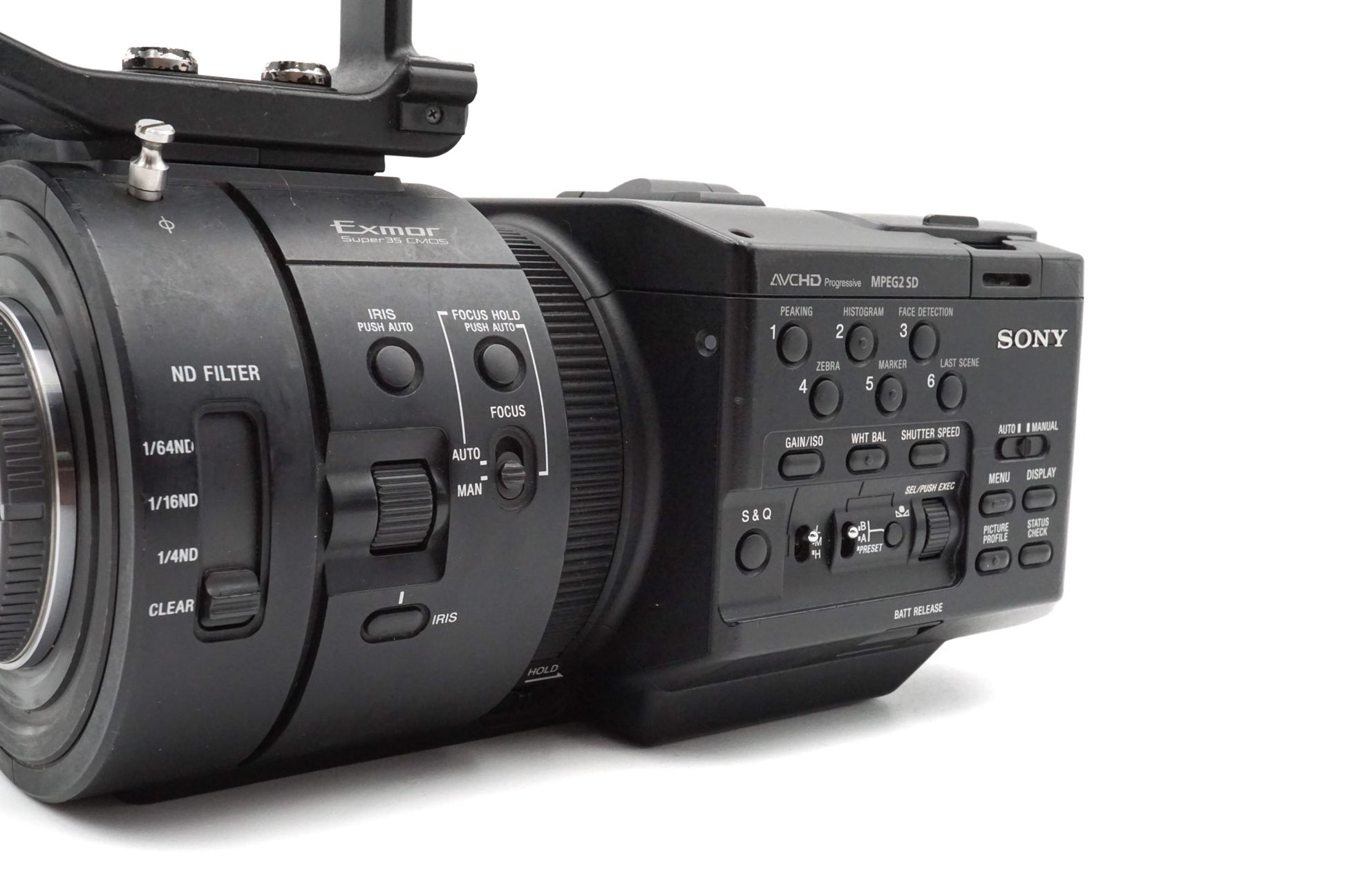 Autofocus digital handheld super 35 video camera made by Sony in 2012. It features built-in ND-filters with the following stops, 1/4, 1/16, and 1/64. Plastic/metal construction available in black.