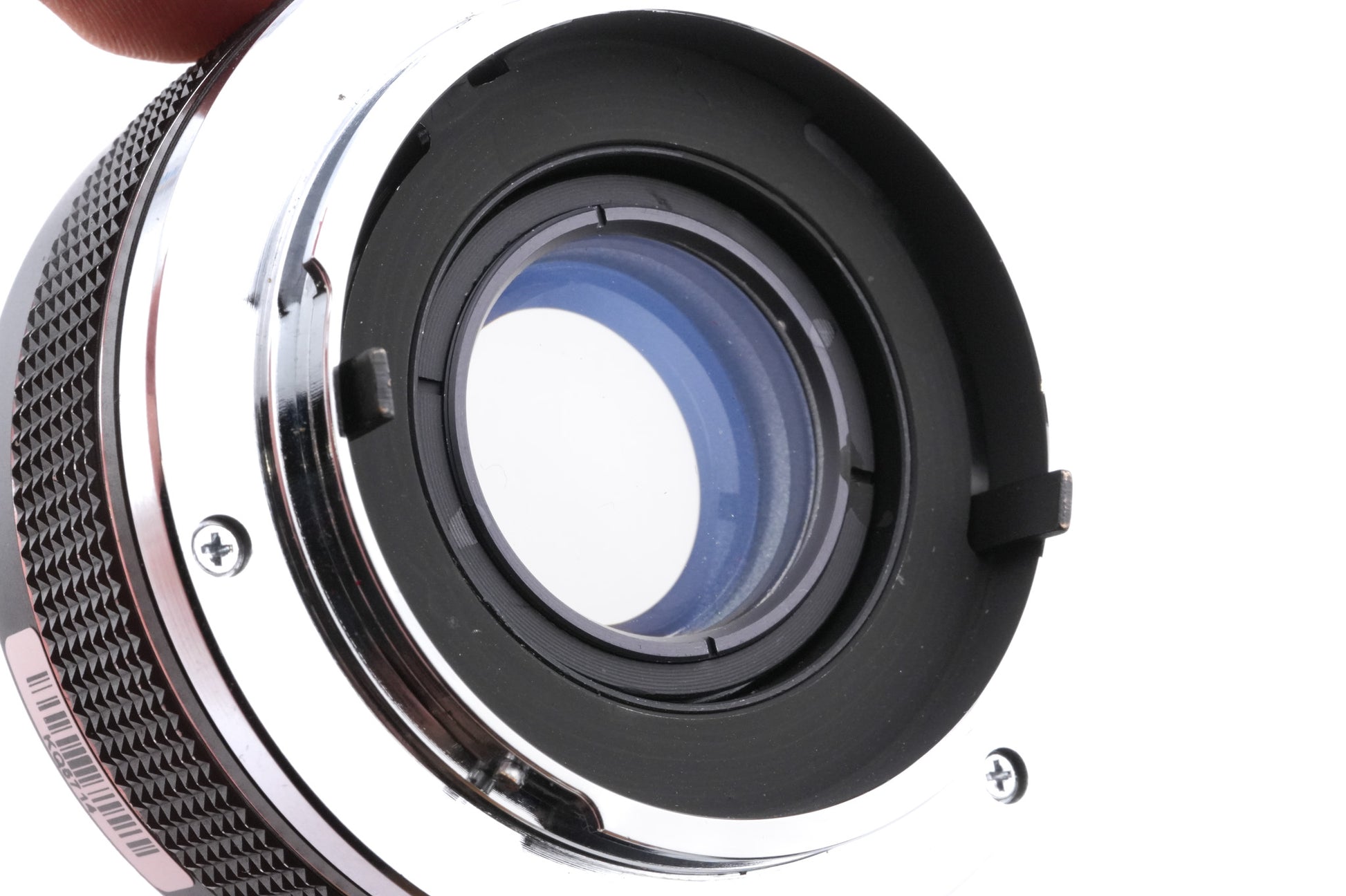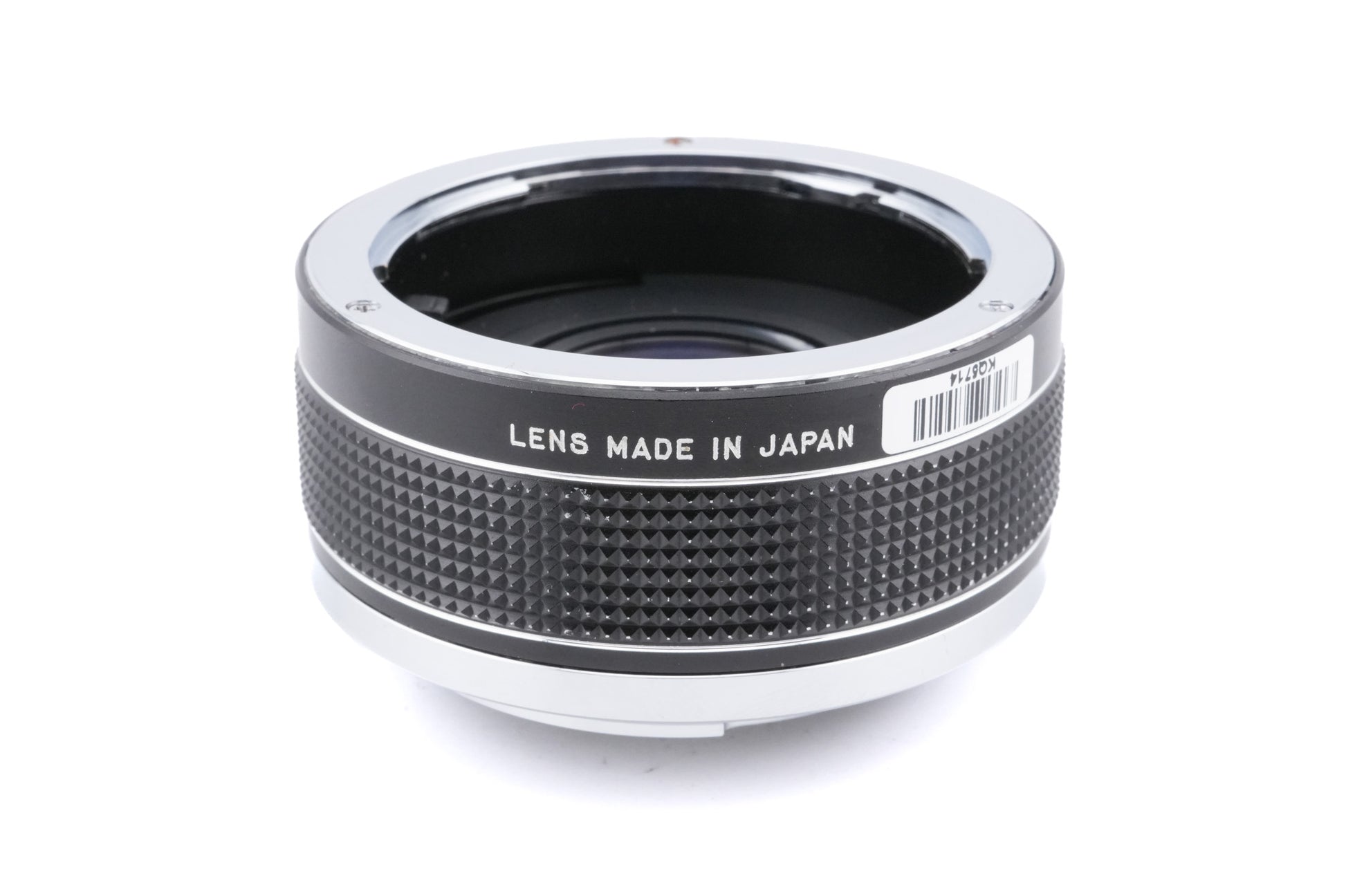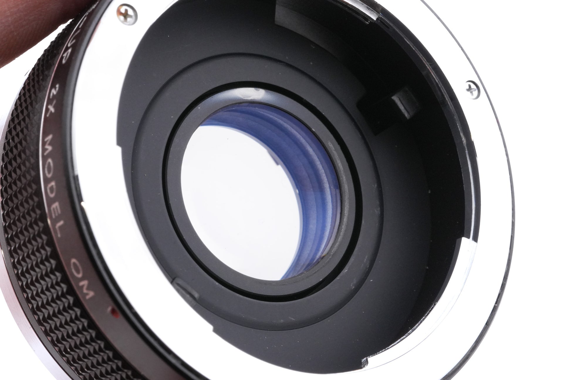 Teleconverter made by Sun for Olympus OM mount SLRs. Multiplies focal length by two and reduces the amount of light by two stops. Metal body available in black.