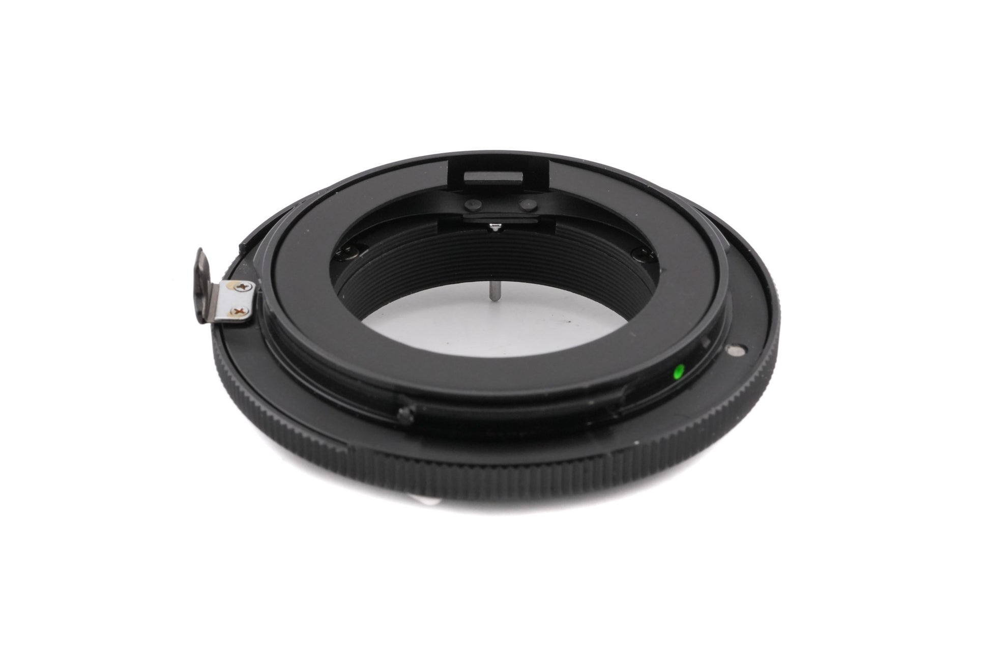 Lens adapter made by Tamron for mounting Adaptall lenses to M42 screw mount cameras. This mount also allows for Fujica bodies to use open aperture metering, auto exposure, and other features. Metal body available in black.