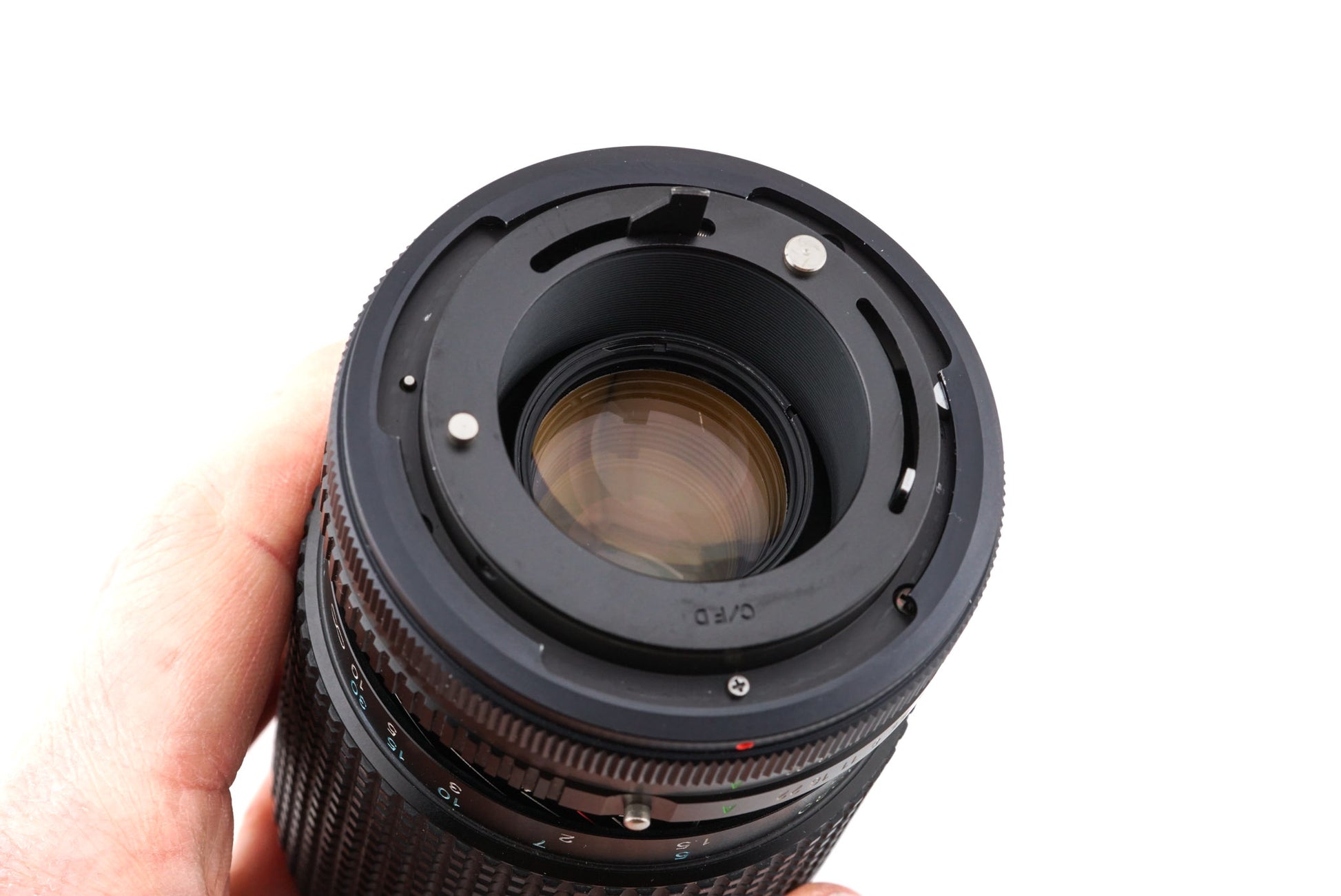 Manual focus push/pull zoom lens for FD-mount SLR cameras by Tokina. Metal body available in black.
