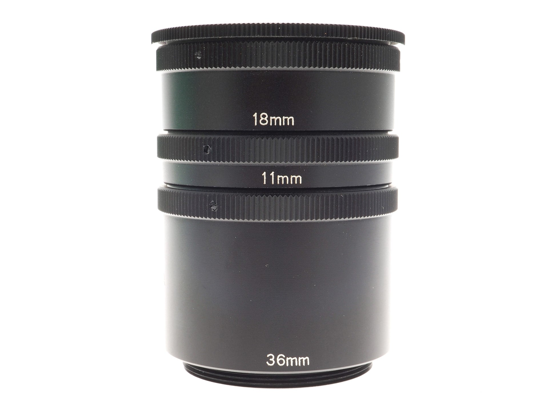 Extension tube set for M42 mount made by Yashica. Metal body available in black. Different sets available with different amounts and lengths of tubes.