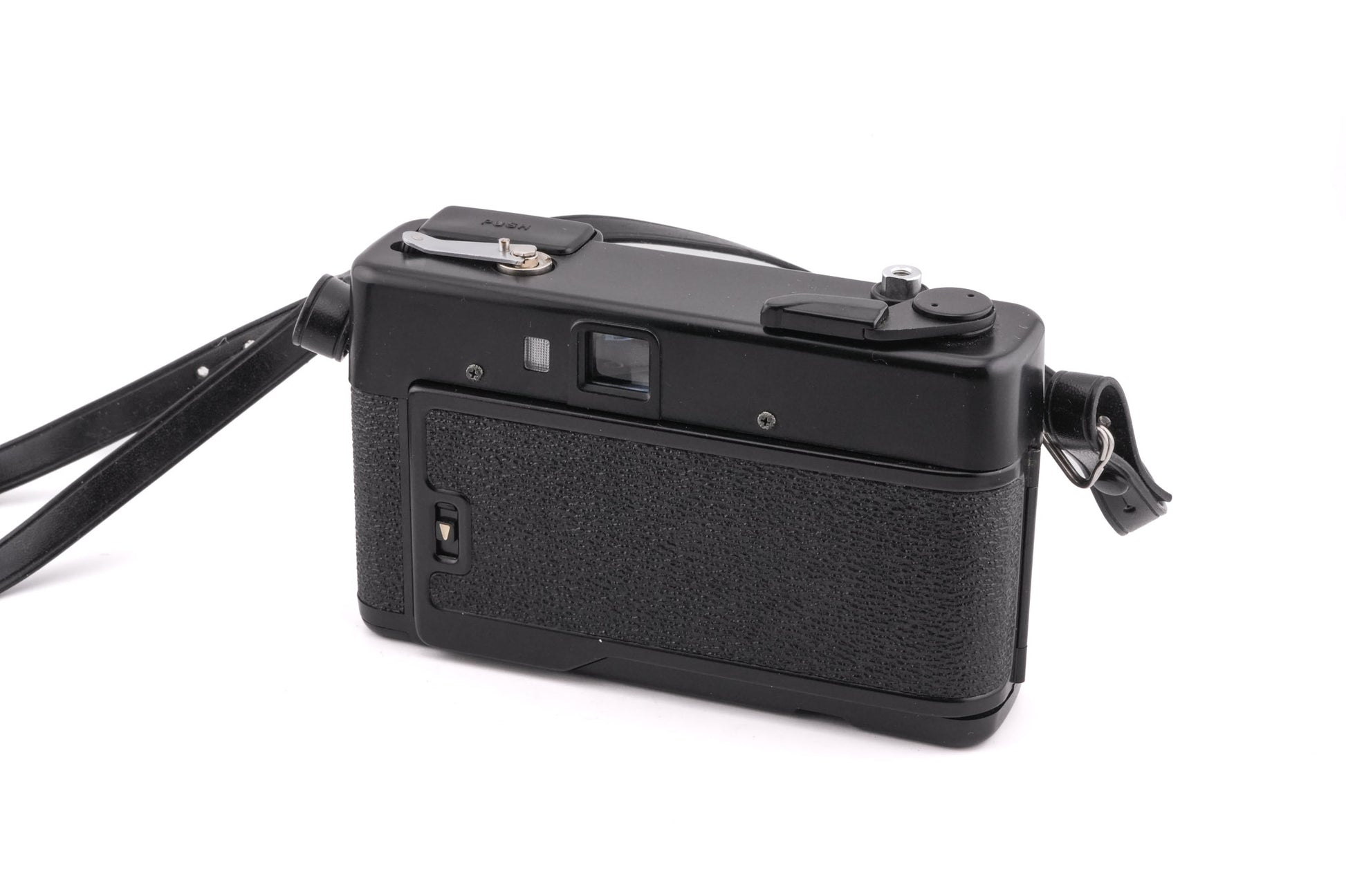 Fixed focus compact camera released by Yashica in 1980. Has a single shutter speed, two apertures, and a fixed focus lens. The CdS meter warns of underexposure so you can use the built-in flash. Plastic body available in black.