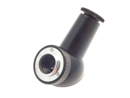 Right angle finder made by Zeiss Ikon. Screws into the viewfinder (~16mm threads) to allow for non-standard viewing angles. Metal body available in black.