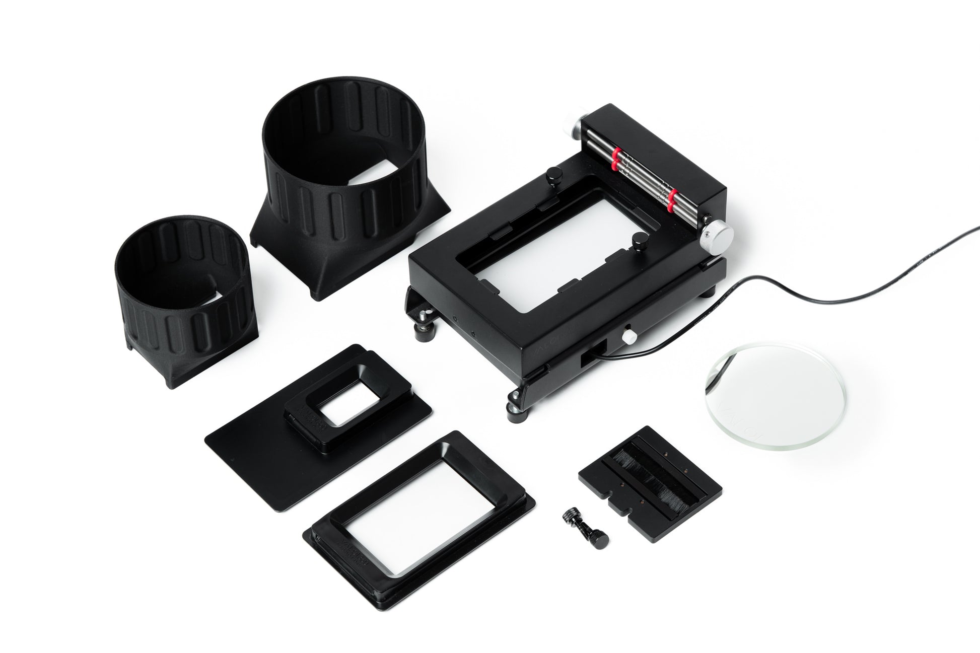 The 360 Professional & Scanning Hood Kit pairs our most popular 360 Scanning Kit with two essential accessories: the Scanning Hoods for both 35mm and 120 Holders. Enjoy professional scanning with all the add-ons! The Scanning Hoods let you scan during daylight without closing your curtains, as they block out any non-image forming light to give you the best scans with minimal effort. You can read more about the Scanning Hoods here