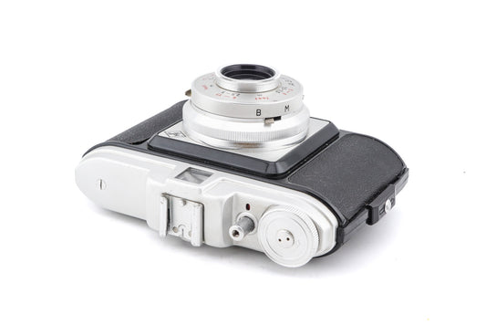 Manual focus 120 viewfinder camera released by Agfa in the 1950s. Lens is collapsible and camera has built-in double exposure prevention. Metal & bakelite body available in silver.