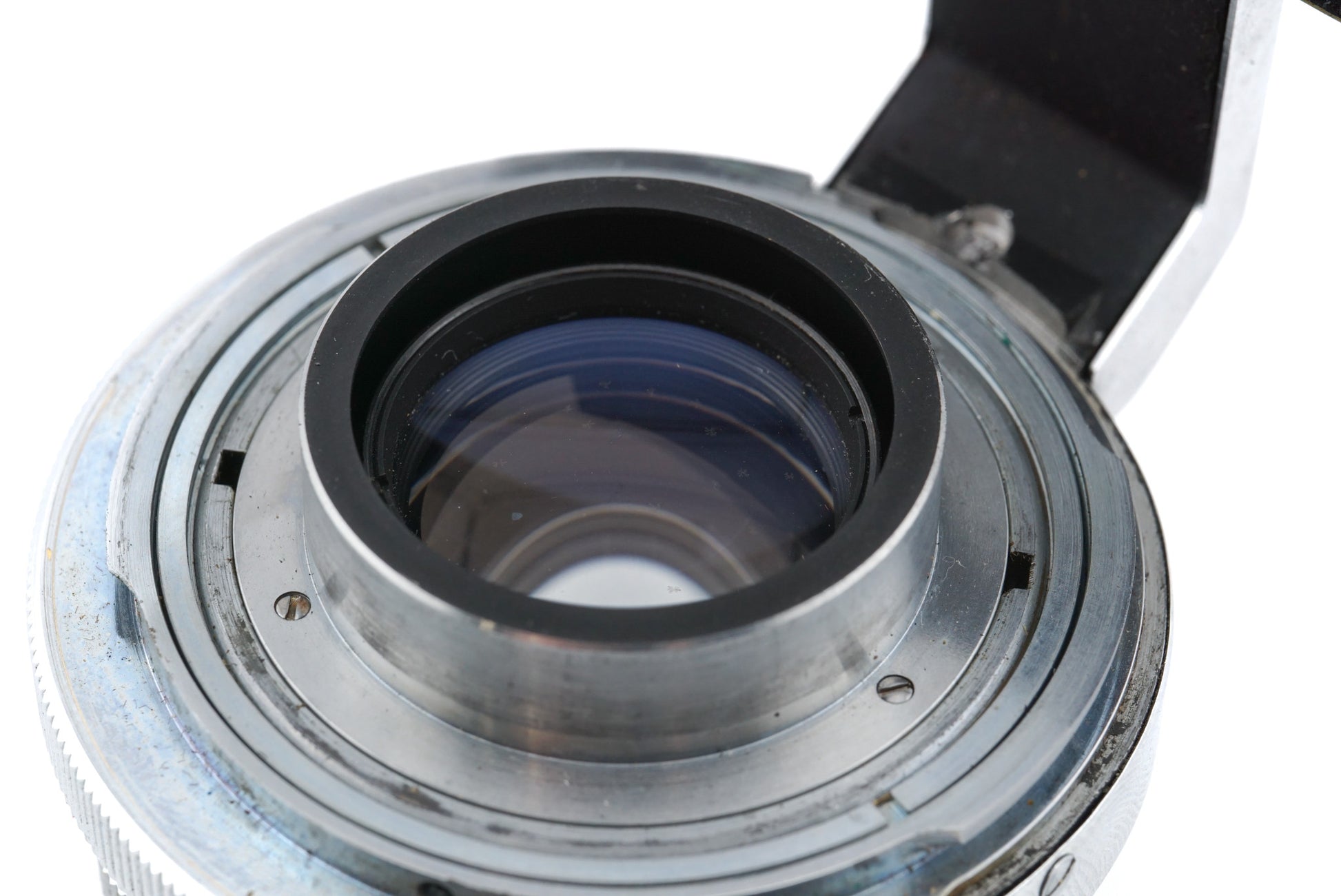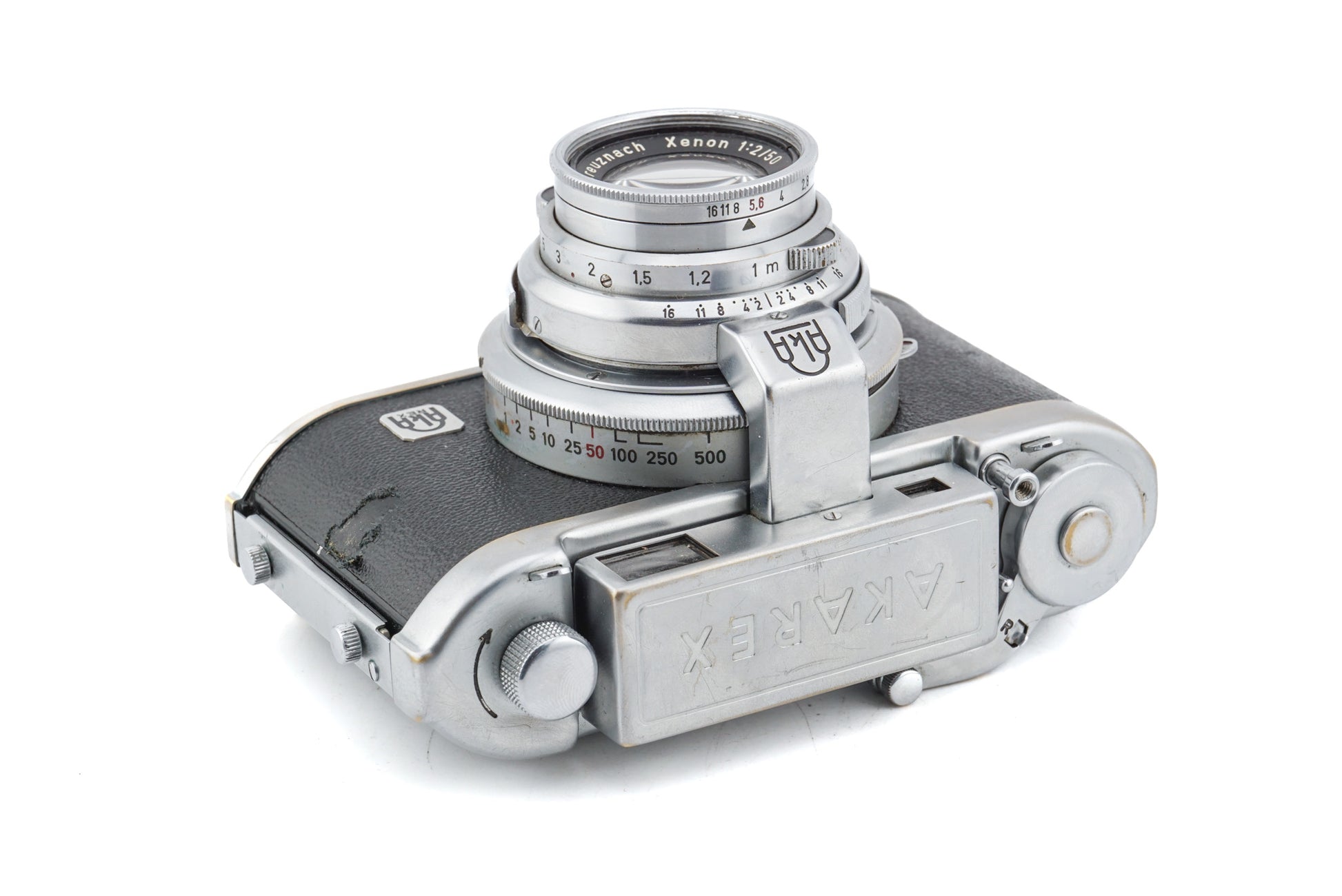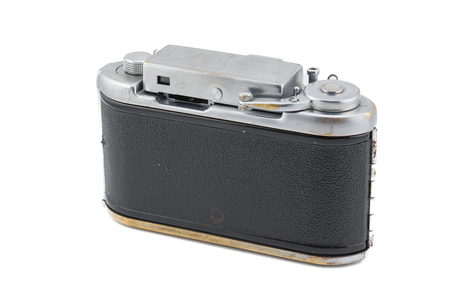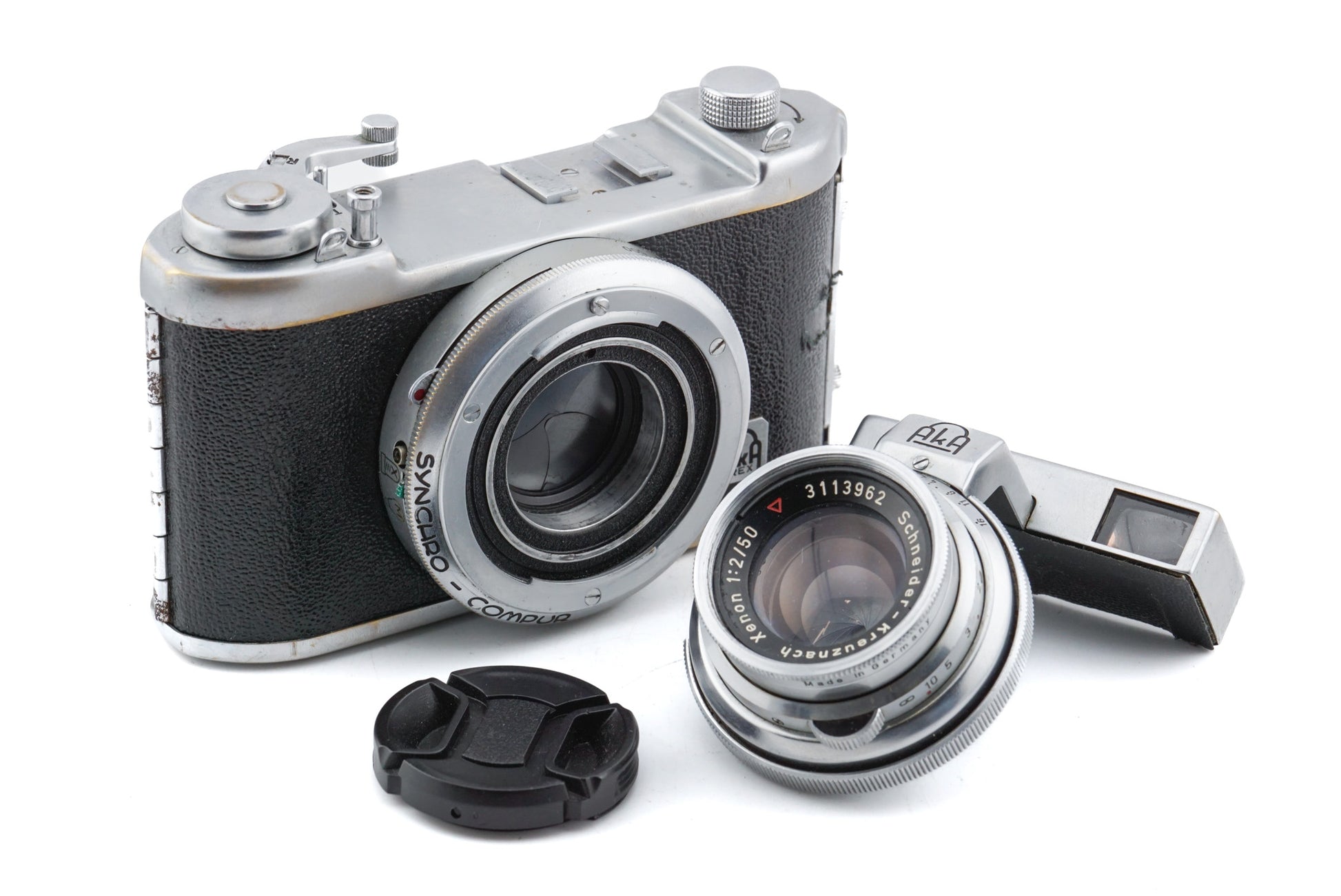 Rangefinder camera with interchangeable lenses made by Apparate & Kamerabau. In contrast to the competition, the rangefinder was part of the lens and the camera itself had no finder but instead a slot for the finder assembly. Metal body available in chrome finish.