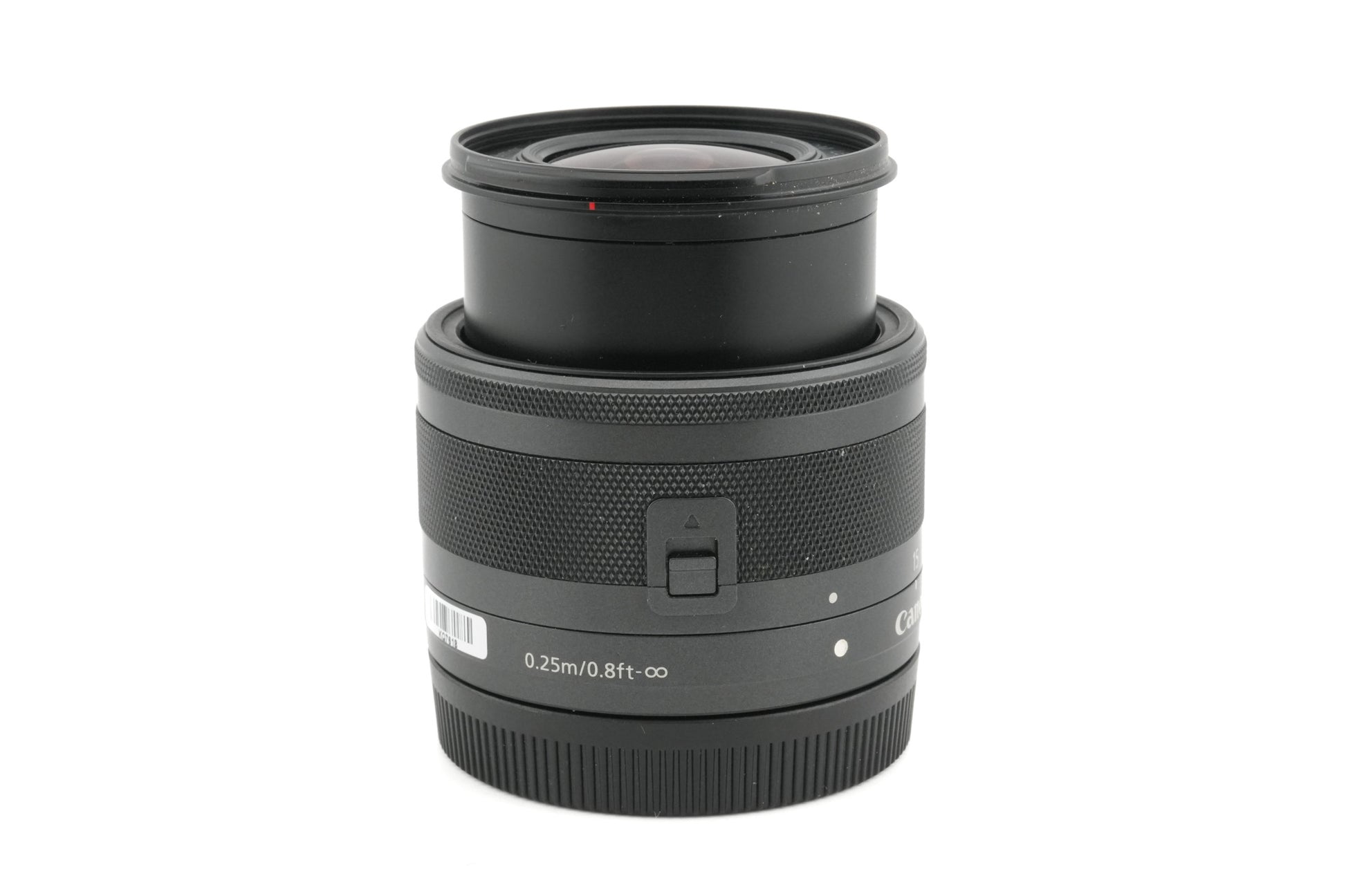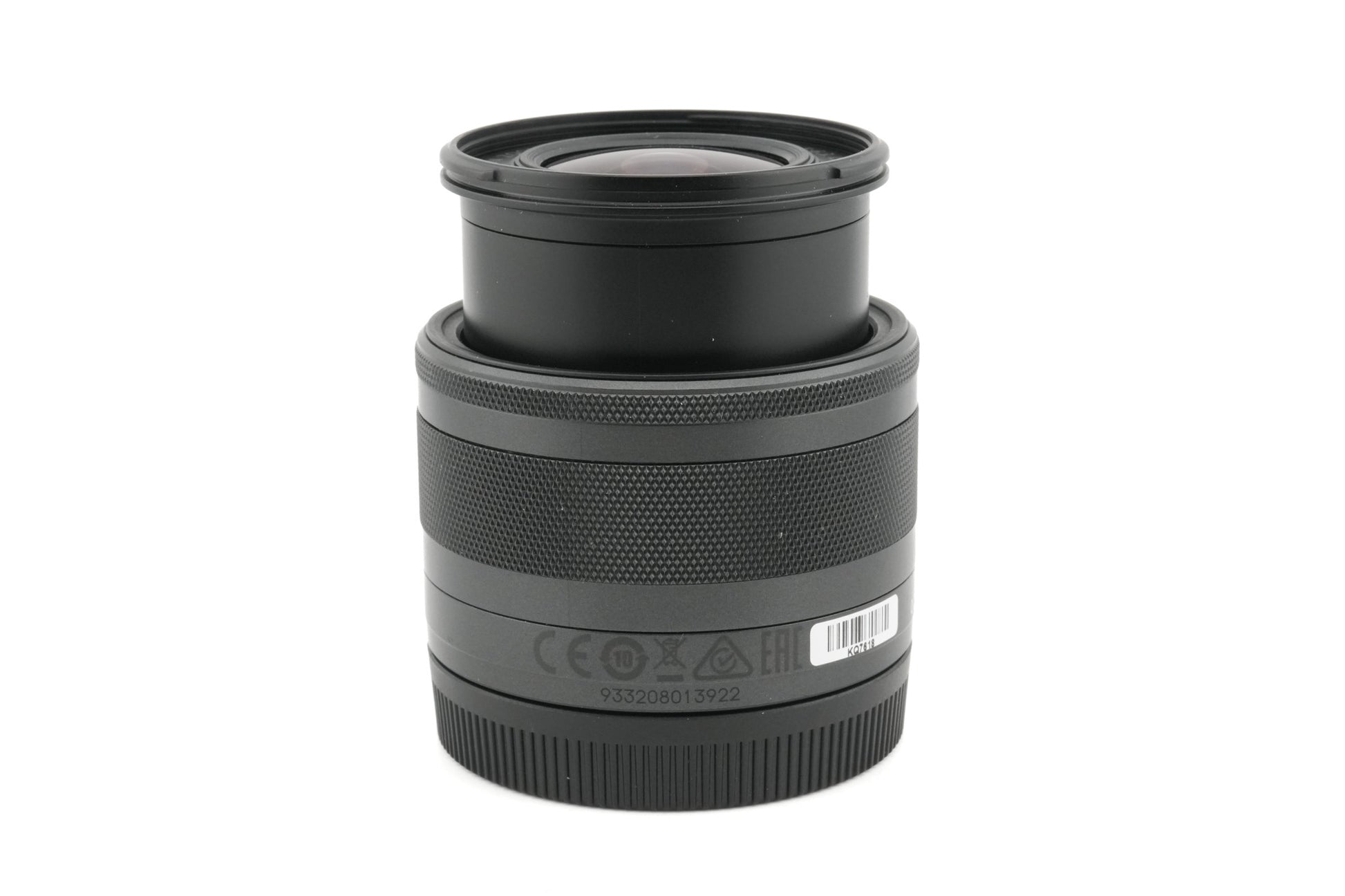 Autofocus normal zoom lens made for EF-M-mount digital mirrorless cameras by Canon. It is designed for APS-C-sized sensors and gives the equivalent field of view to a 24-72mm lens on full frame/35mm. The lens has image stabilization (IS) and uses Canon's stepping motor (STM) for autofocus. Plastic body available in black and silver.