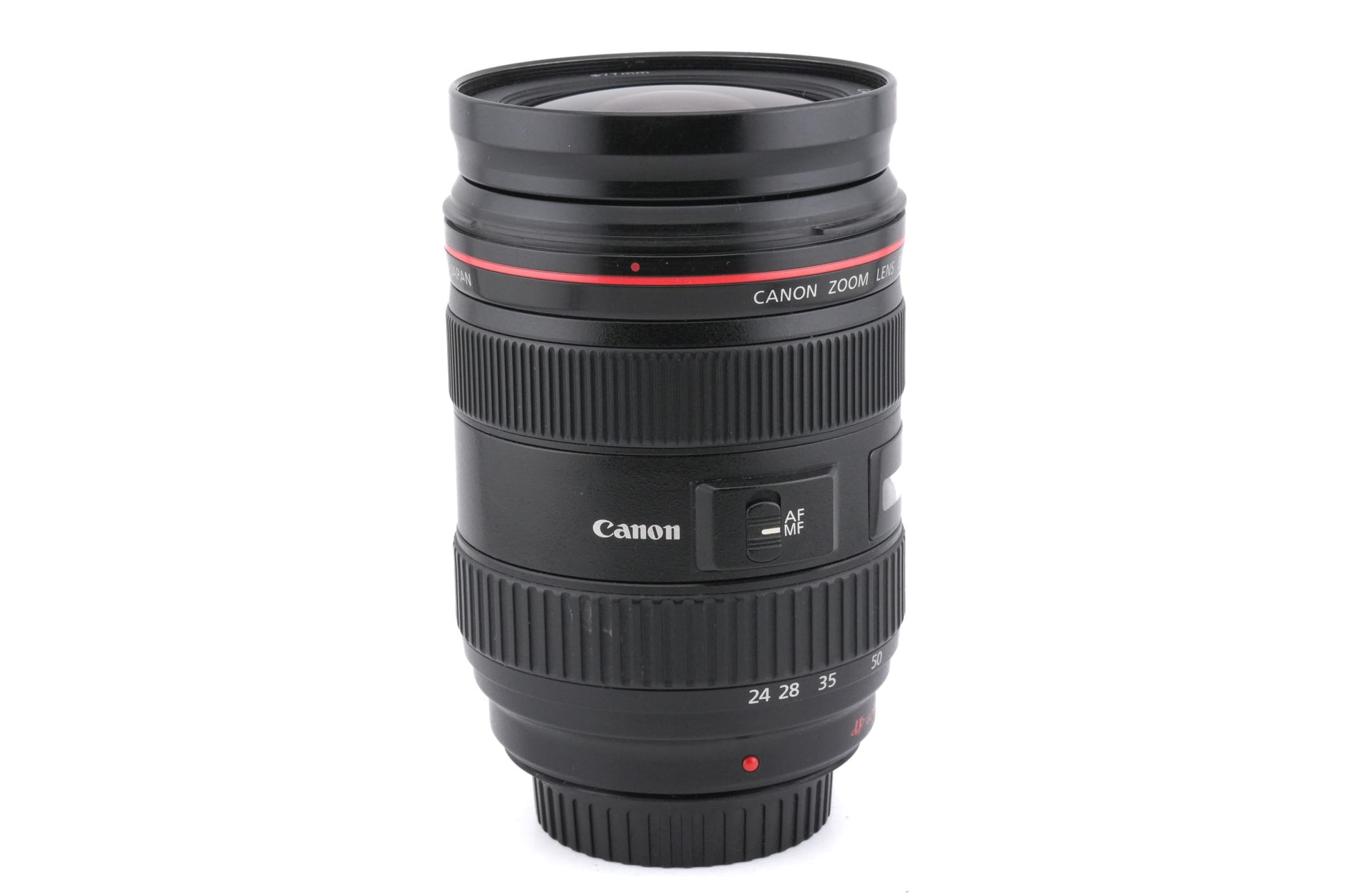 Autofocus normal zoom lens made for EF-mount (D)SLRs by Canon. It is part of the professional L series of lenses and features an ultrasonic motor (USM) for focusing. Plastic/metal body available in black.