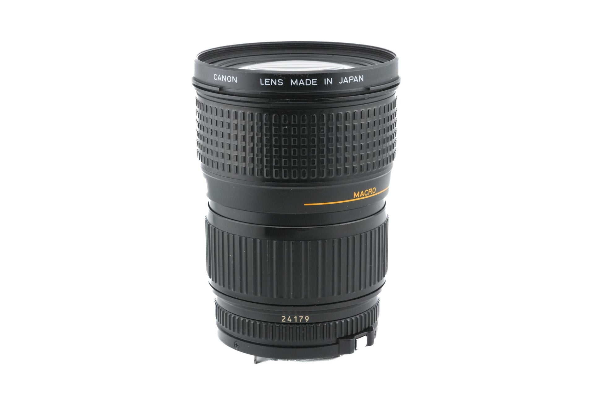 Manual focus zoom lens made for FD-mount 35mm SLR cameras by Canon. It has macro capabilities. Plastic body available in black.