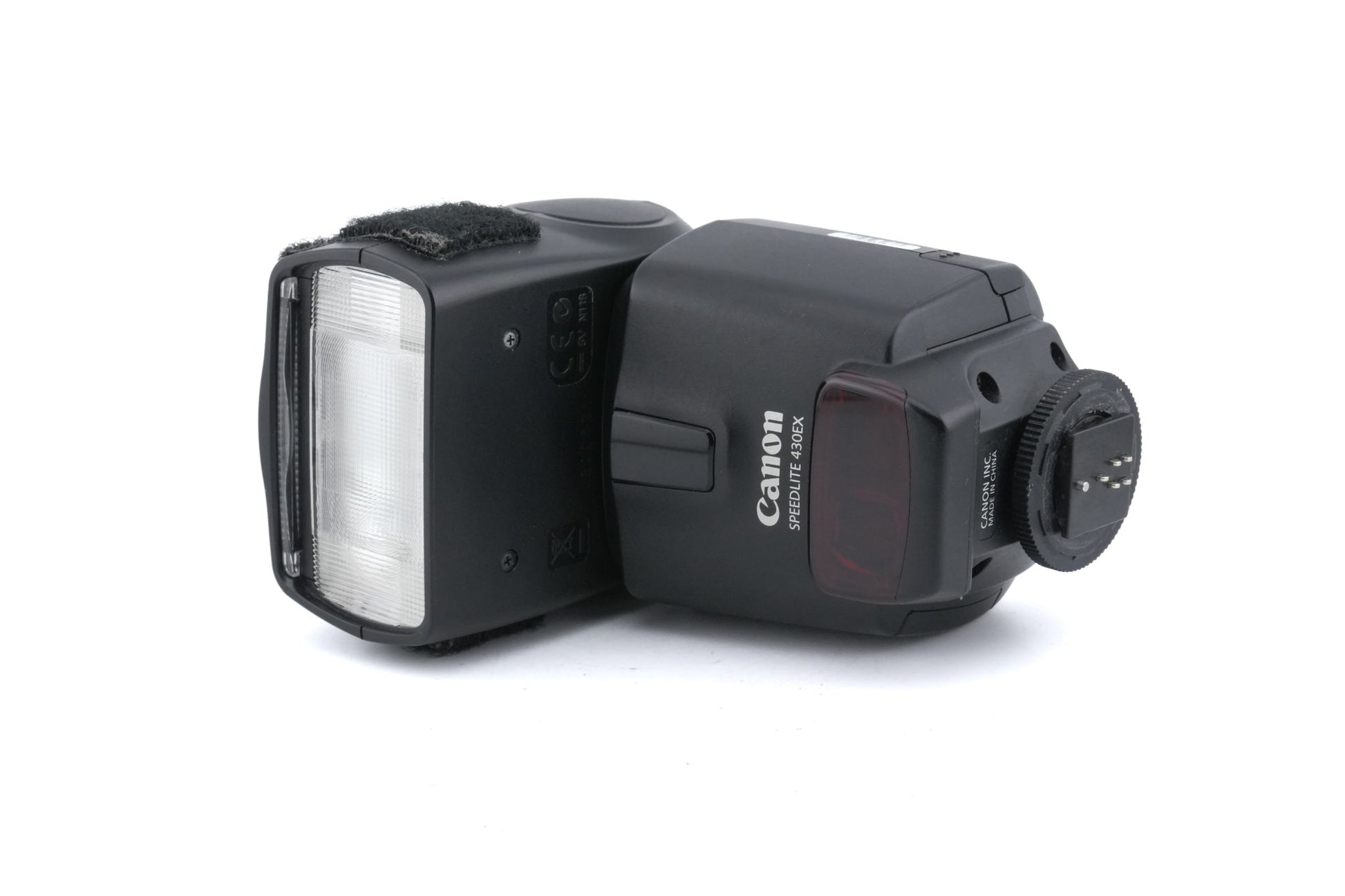 Flash released by Canon in 2005. This was the first generation of the 430EX. It's compatible with EF and EF-S mount DSLRs and has a tilt/swivel head. It can automatically zoom to compensate for lenses from 24-105mm. Plastic body available in black.