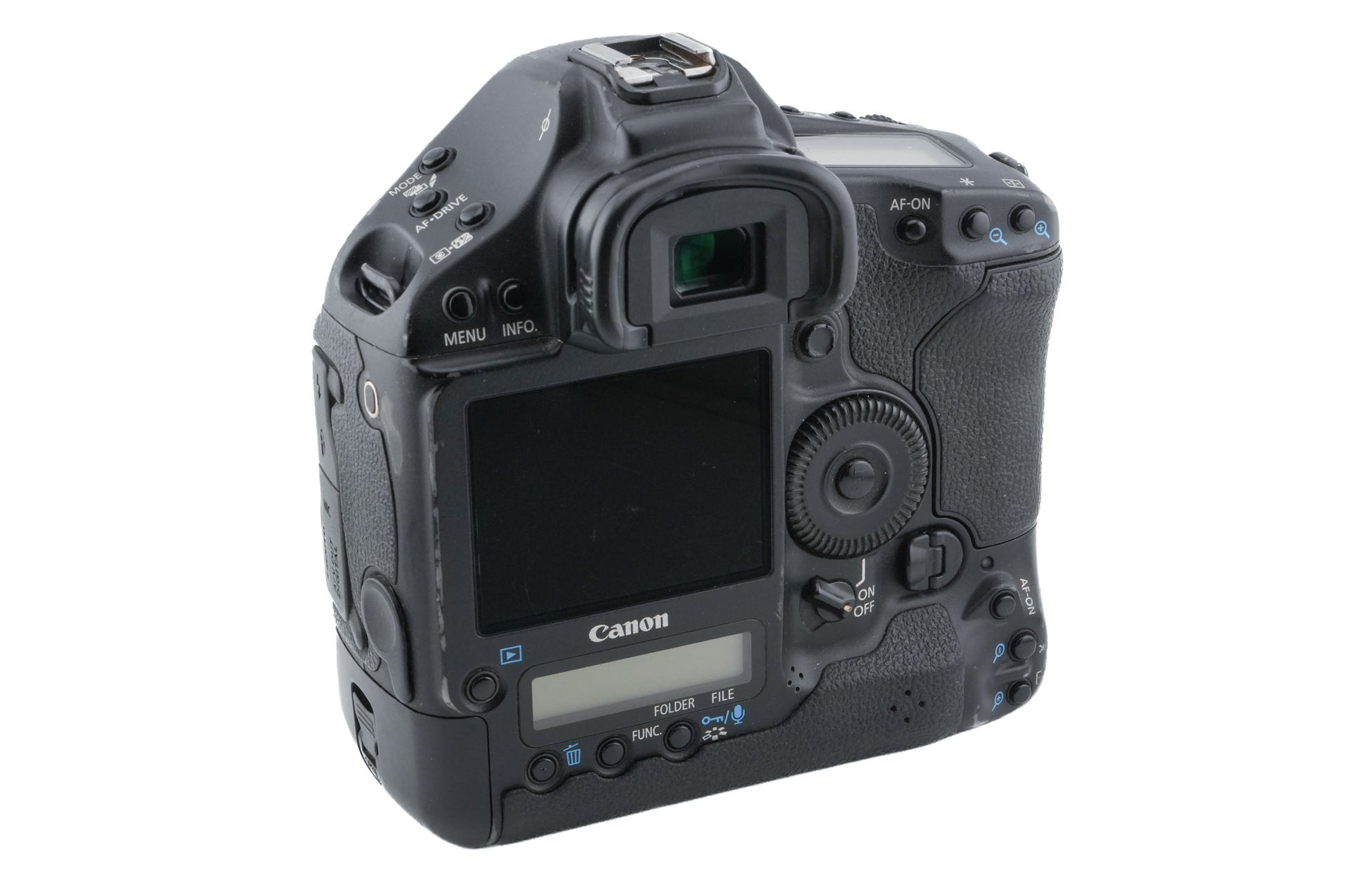 Autodfocs EF-mount digital SLR released by Canon in 2009. It was marketed for professional photographers. It can record 1080p video and is weather-sealed. Magnesium alloy body available in black.