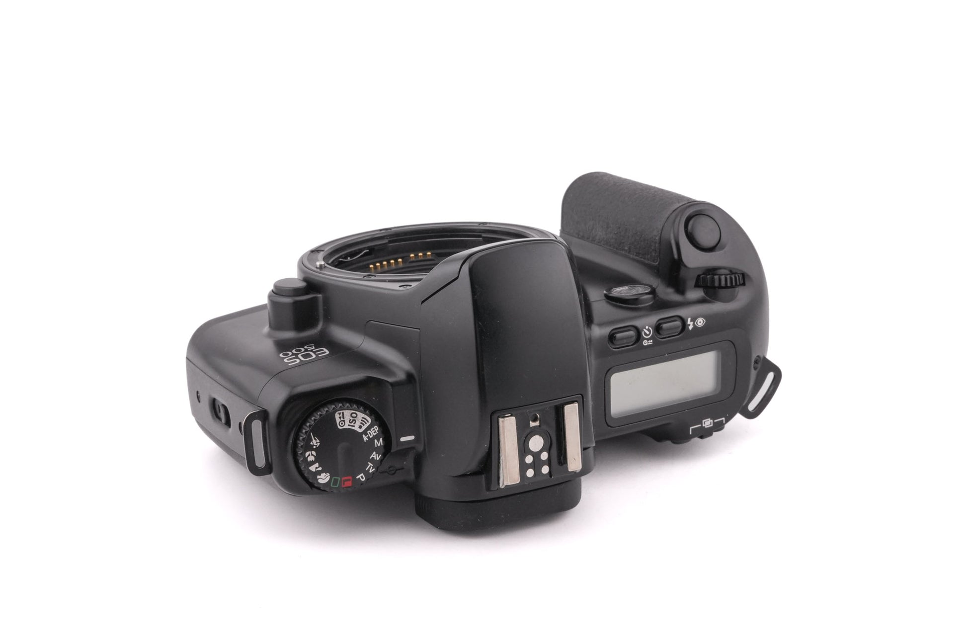Autofocus EF-mount 35mm SLR released by Canon in 1993. Also known as the EOS Rebel XS (NA) and EOS Kiss (JP). The original price (59,000 Yen) is equivalent to around 400 Euros in 2024. Plastic body available in black.