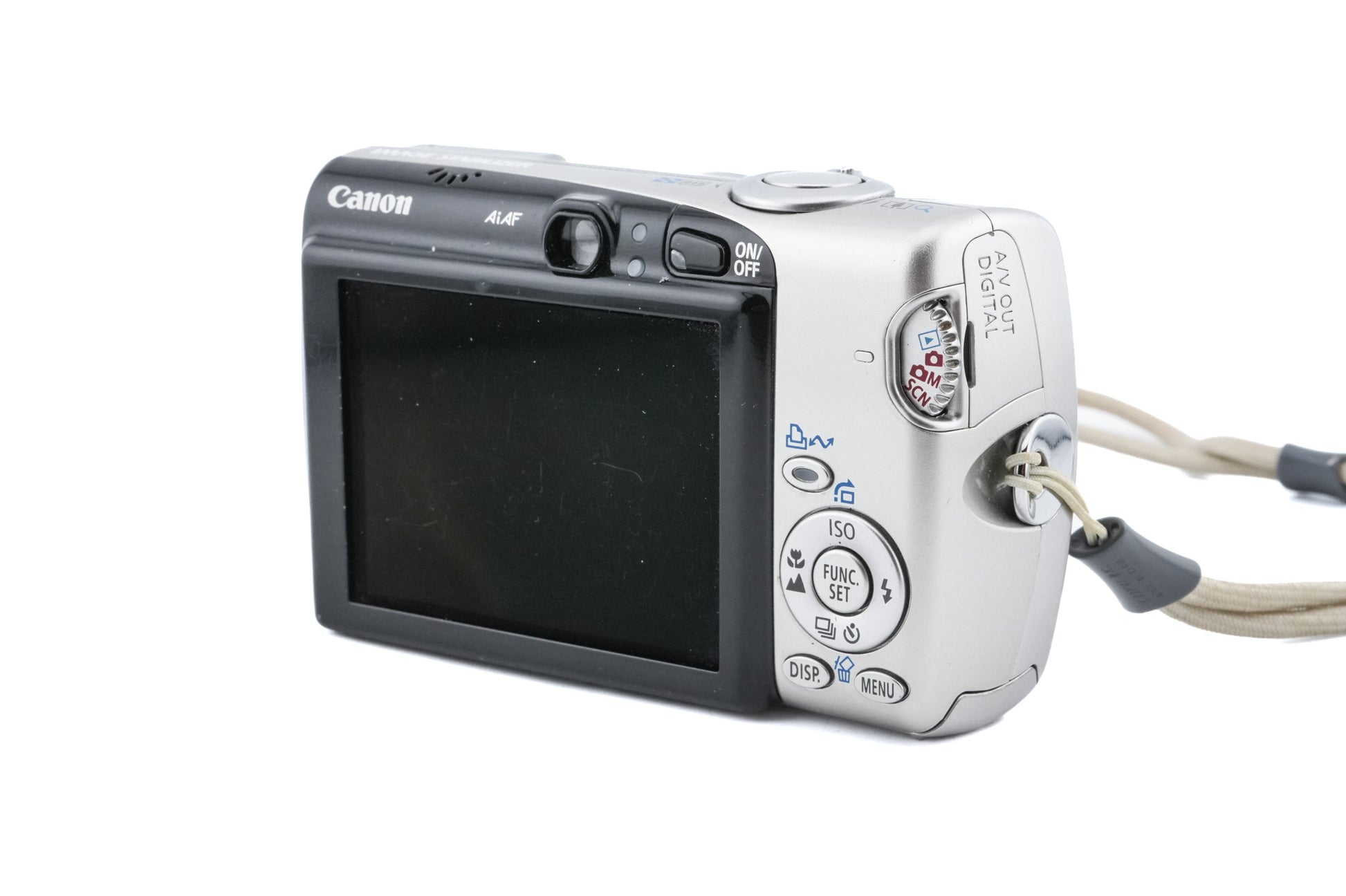 Autofocus compact digital point-and-shoot camera introduced by Canon in 2006. It has a 35-140mm equivalent lens, an optical viewfinder, and a 2.5" rear LCD. It records 640 x 480, 30ps video. Plastic body available in silver.