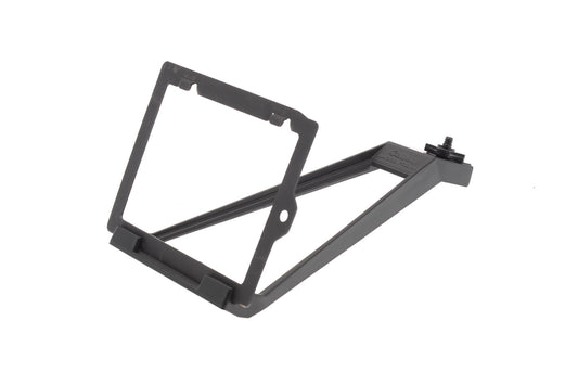 Macro frame for Canon auto zoom 318M 8mm movie camera. Makes it easy to take macro shots and make titling. Attaches to the cameras body above the lens. 22.5cm away from the film plane. Black plastic construction.