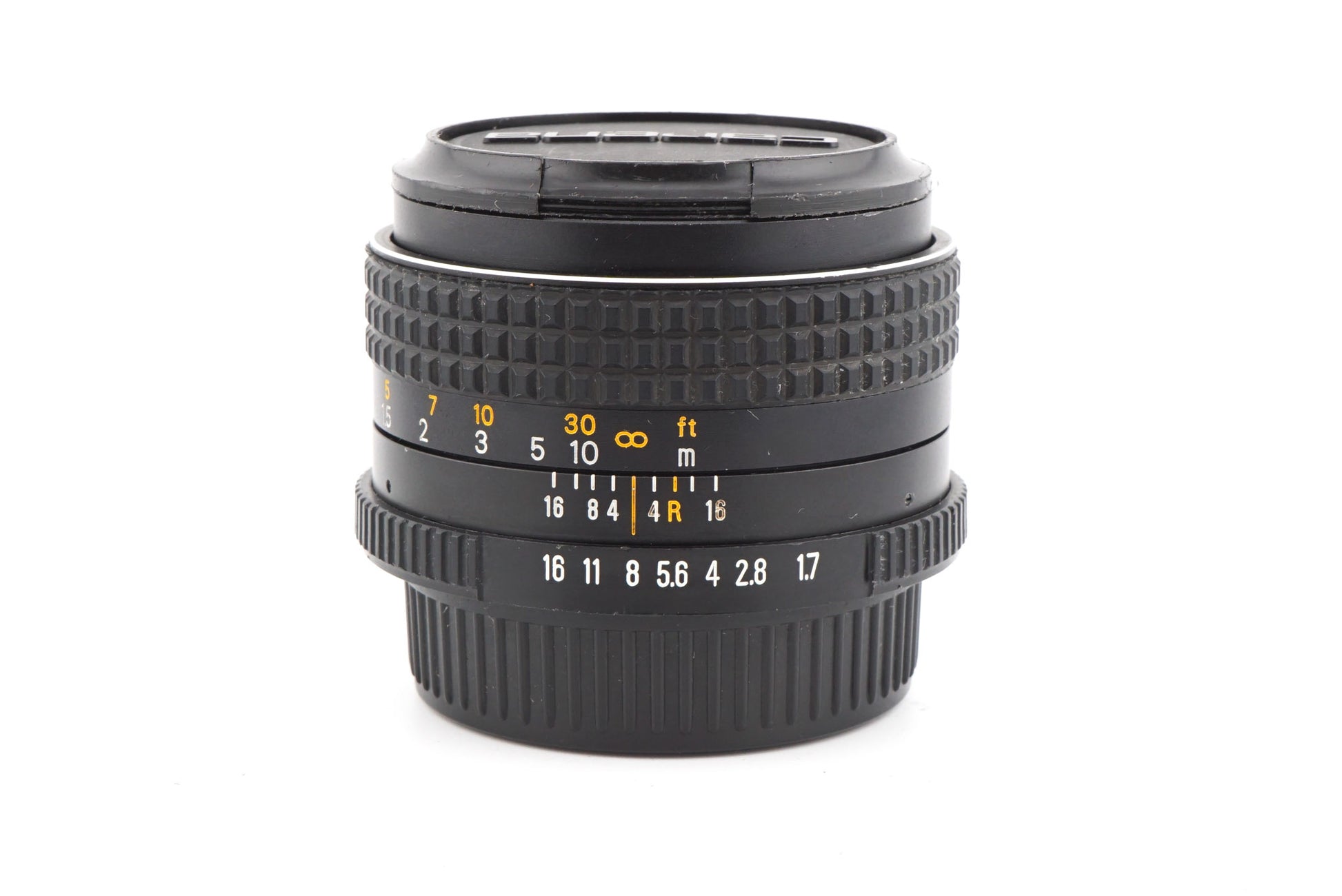 Manual focus normal lens made for Pentax K mount 35mm SLRs by Carena. Metal body available in black.