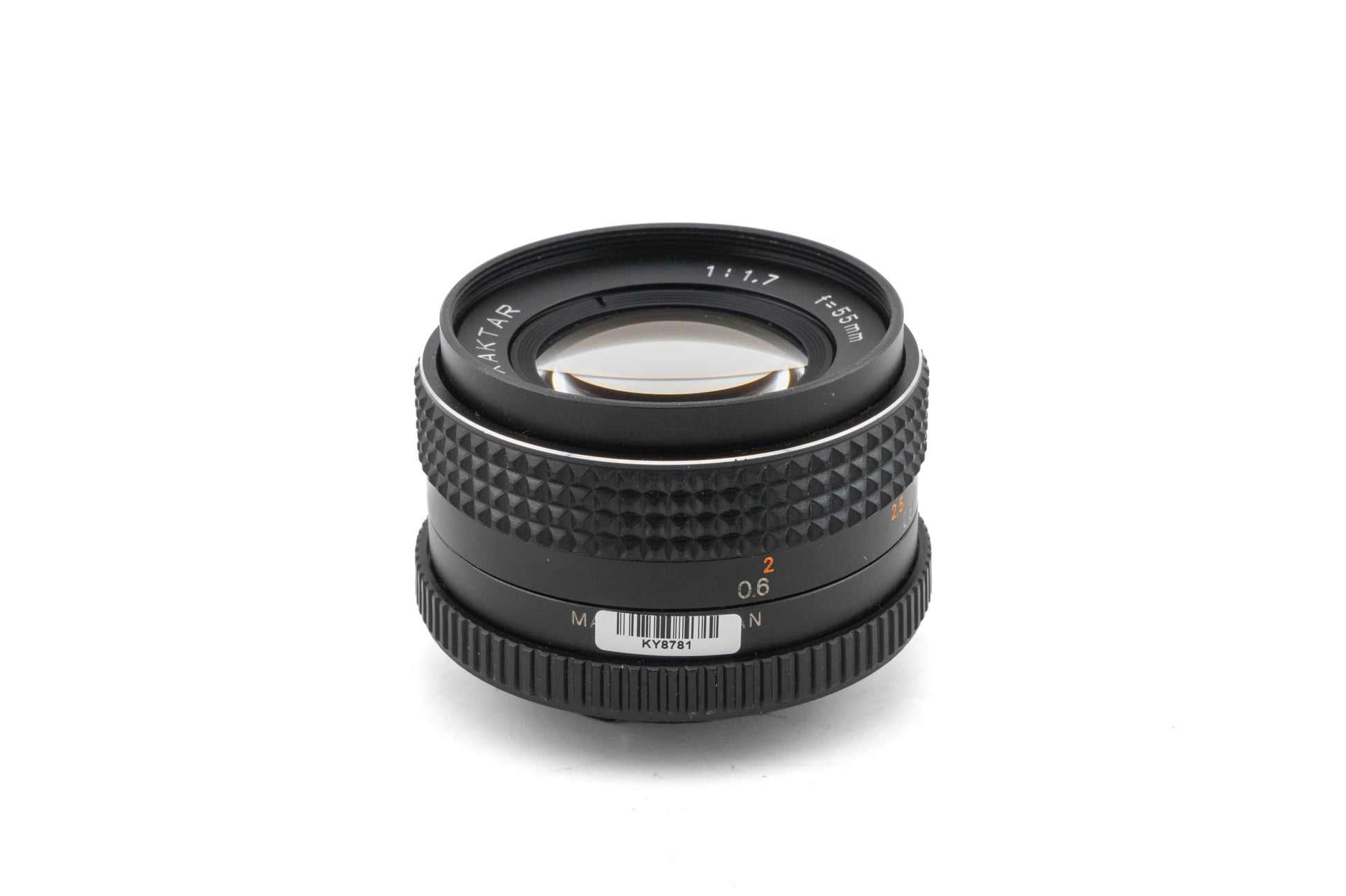 Manual focus normal lens made for Exakta/Topcon mount 35mm SLRs, made long after the release of the Exakta mount in 1936. Likely made by another company, like Cosina. Metal body available in black.