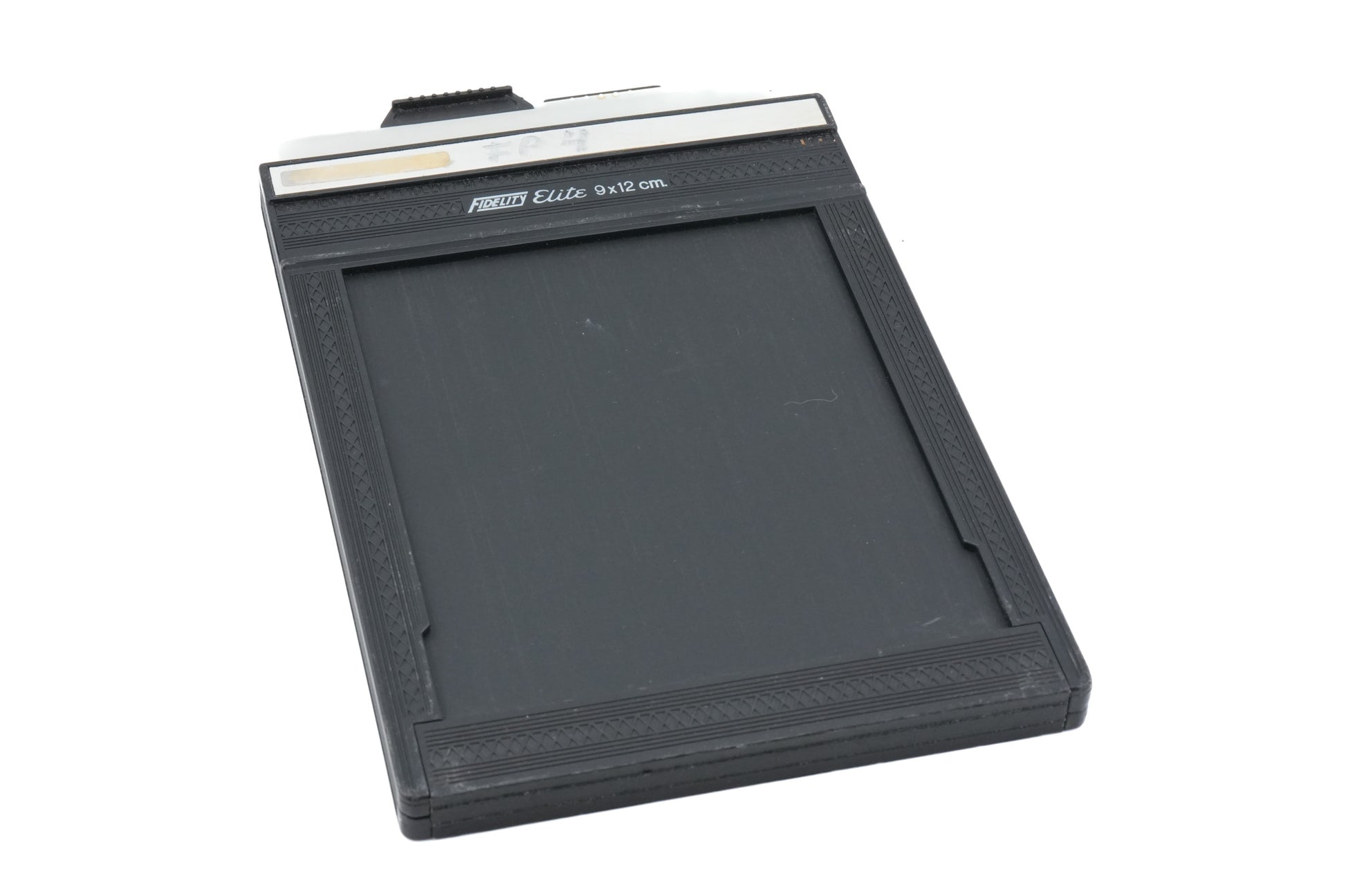 9x12cm sheet film holder made by Fidelity. Each holder can hold two sheets of film, one on each side. Made in the USA. Plastic body available in black.