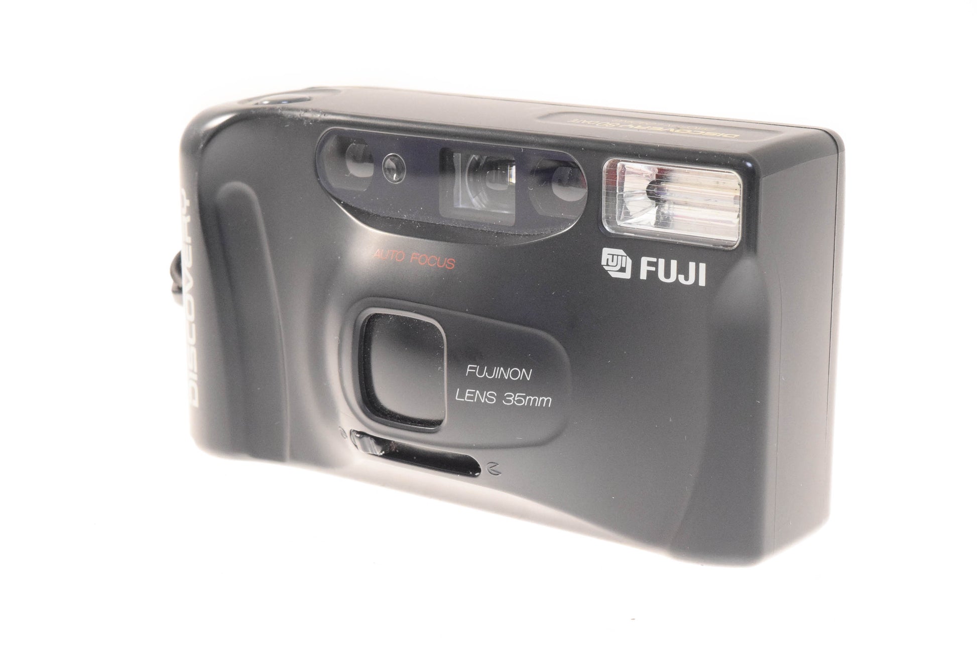Simple 35mm compact point-and-shoot camera released by Fuji. Has a built-in flash, and Fuji's Drop-in Loading (DL) system. Plastic body available in black.
