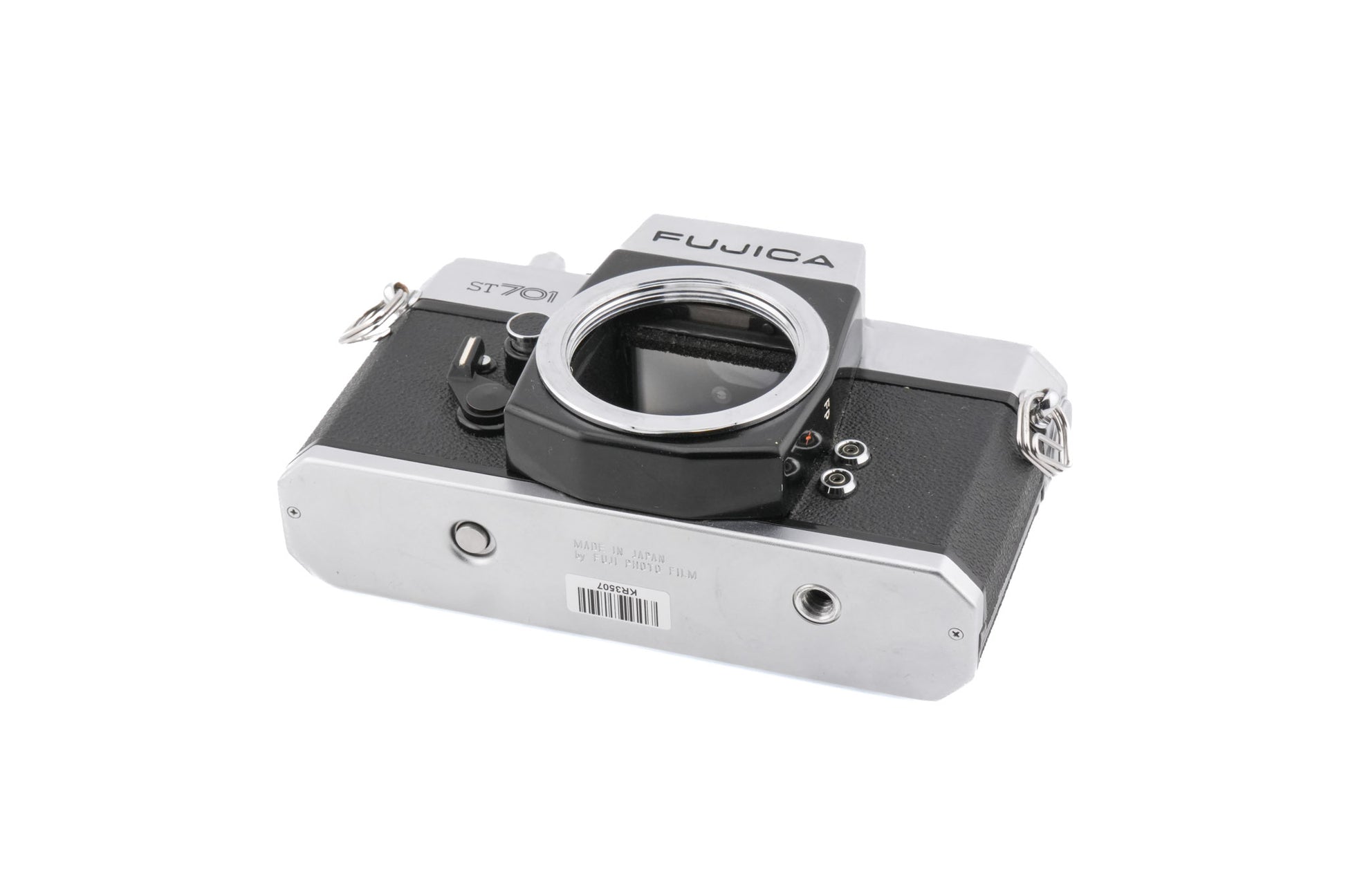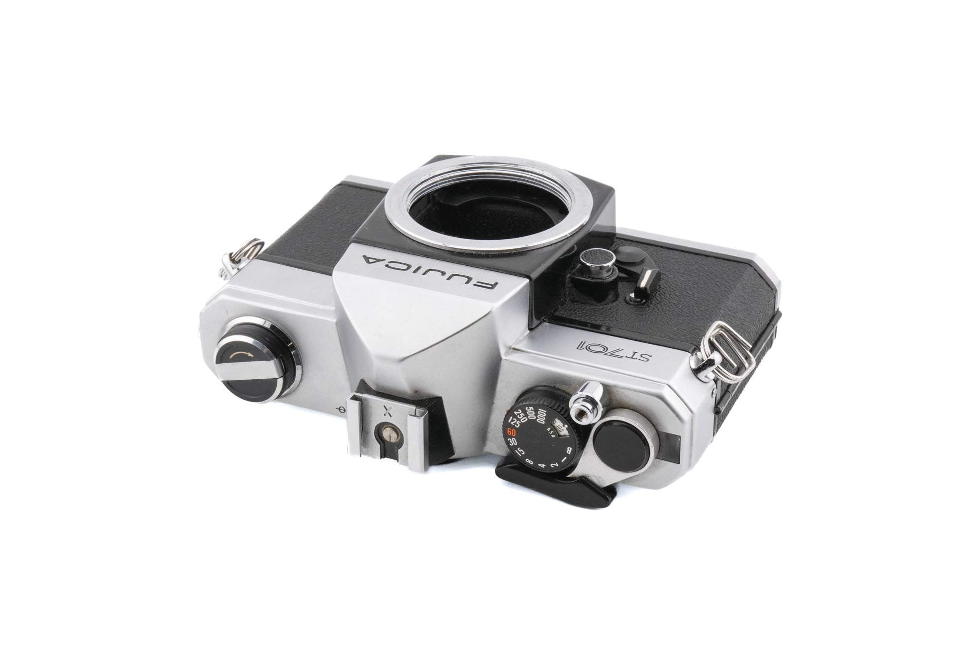 35mm manual focus M42 mount SLR camera released by Fuji in 1971. Uses outdated E400N mercury batteries to power light meter. Metal body available in black & silver.