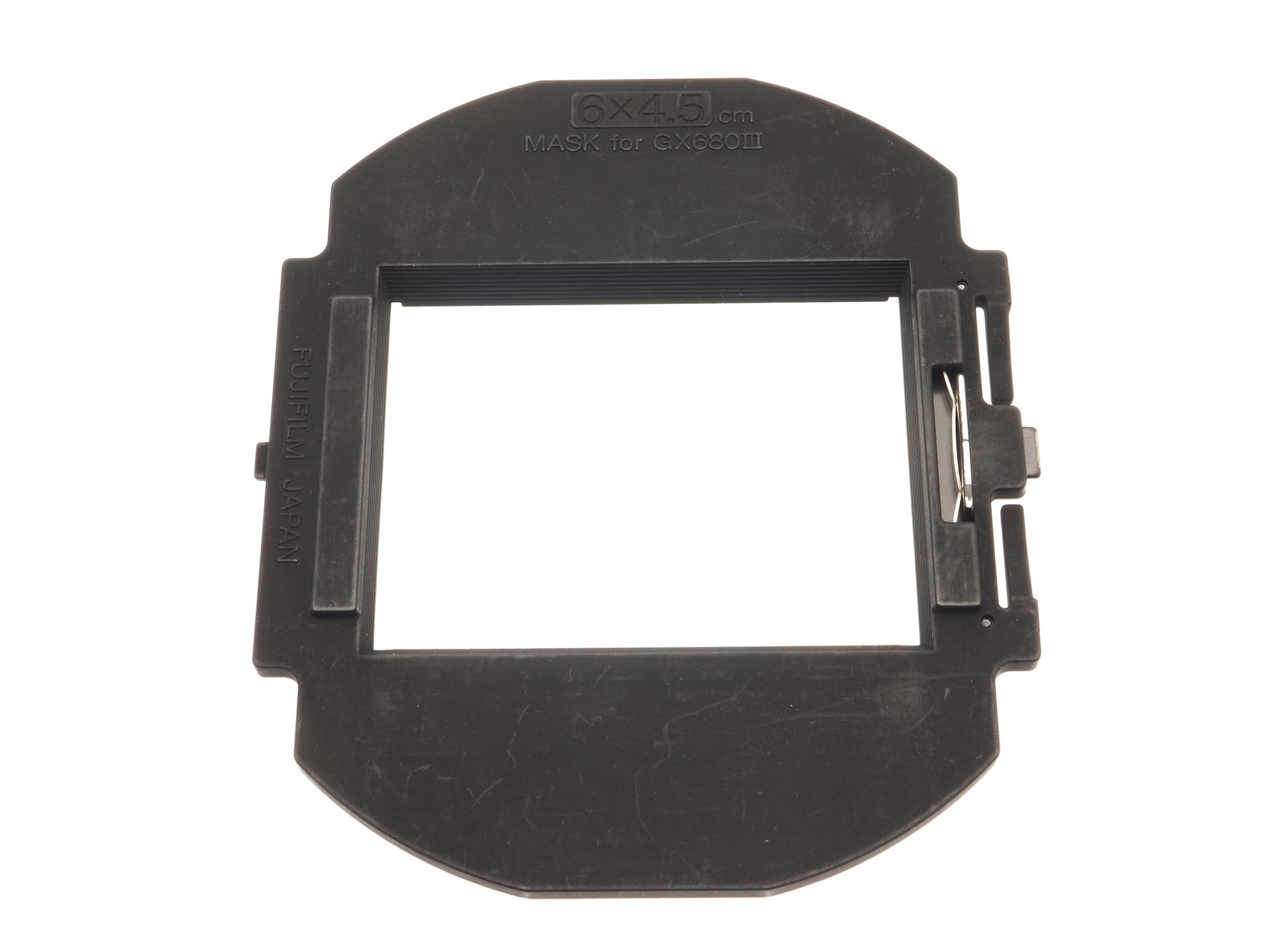 6x4.5 Film mask for Fuji GX680 system film backs. Compatible with GX-systems Roll film holder III. Installed mask will be indicated on film holders LCD and the camera will adjust the film advance accordingly.