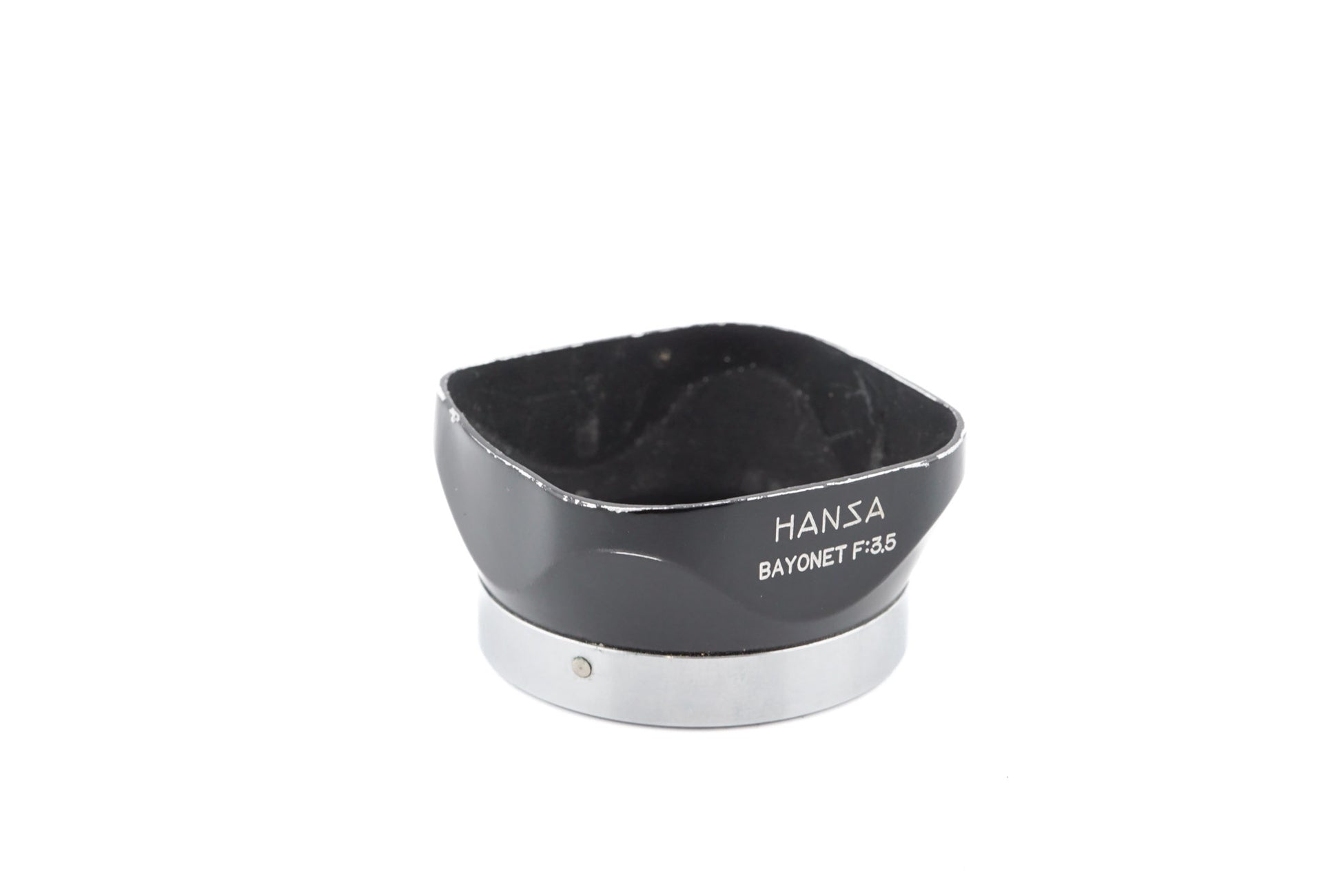 Lens hood made by Hansa for Bay 1 mount TLR lenses. Metal body available in black.